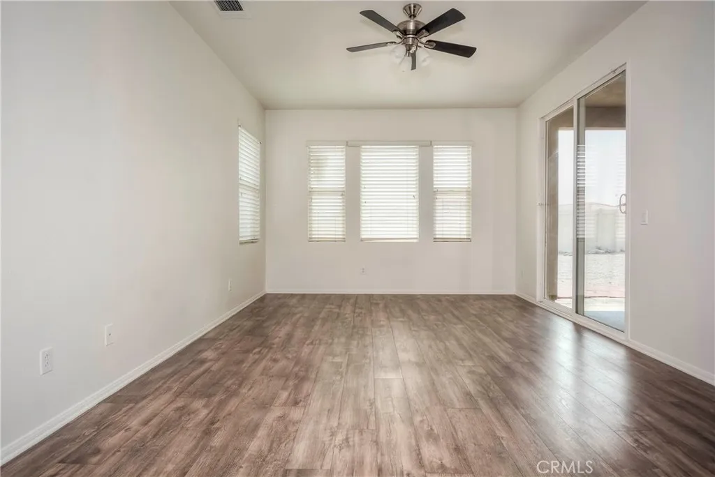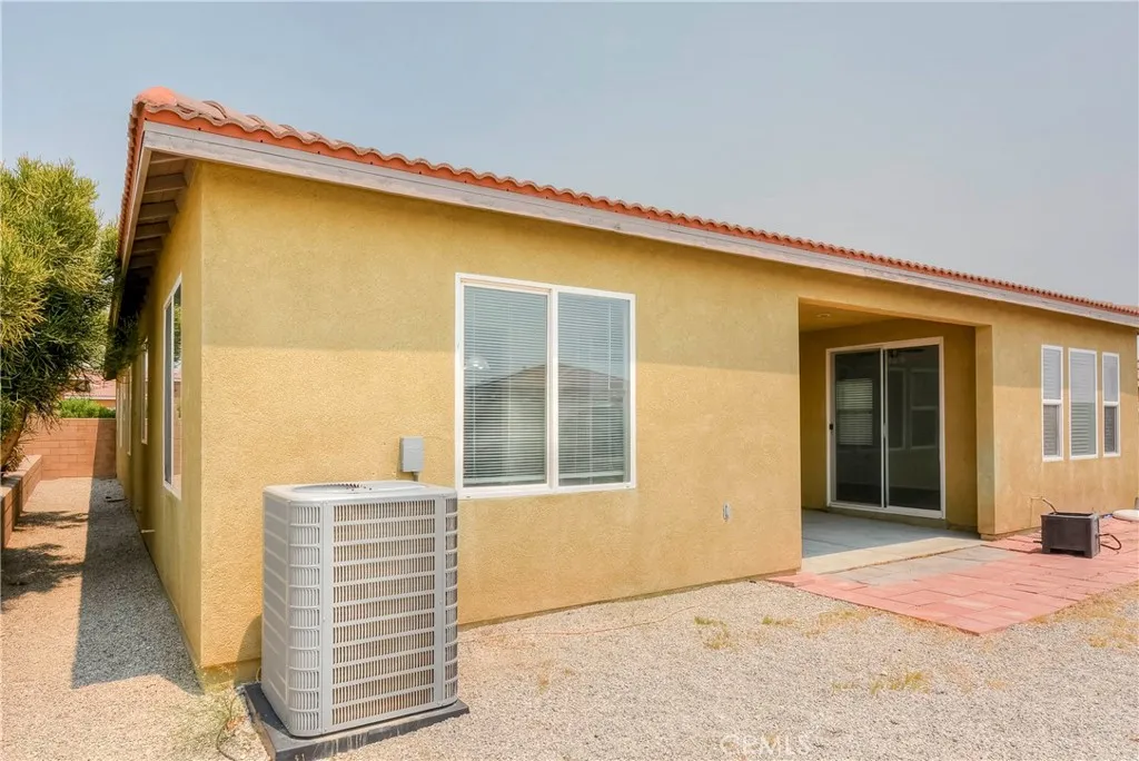 Discover this stunning home nestled in the sought-after Skyborne community of Desert Hot Springs. The residence features four bedrooms, two full bathrooms, and a two-car garage. The living room is airy and bright, while the expansive kitchen boasts elegant granite countertops, a large island with bar seating, stainless steel appliances, ample cabinet space. The kitchen flows into the living room, ideal for family gatherings. Enjoy recessed ceiling lights, ceiling fans, high ceilings and tile and wood laminate flooring through out the house. A sliding door leads from the dining area and the primary room to the backyard. The primary suite includes a spacious bedroom, large walk-in closet, and a bathroom with dual sinks, a separate walk-in shower, and a bathtub. Three additional well-proportioned bedrooms are included and a full bathroom. The covered patio offers additional space, perfect for outdoor entertainment. The laundry room's convenient location near the garage adds to the home's thoughtful layout. The backyard is drought-resistant and low-maintenance, offering water savings. Skyborne community amenities enhance the living experience with a community pool, BBQ areas/parks, a dog park, and private gates. Close proximity to Palm Springs, restaurants, shopping, casinos, and entertainment.