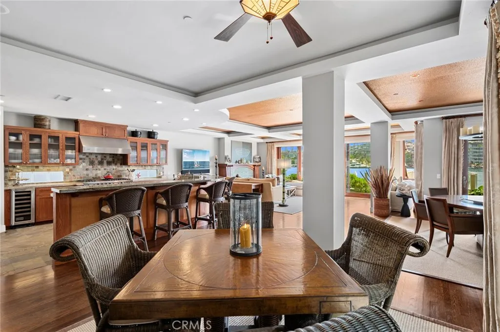 Paradise on the sought after Peninsula Point bayfront! Spanning 45 feet on the bay, this beautifully detailed Craftsman influenced home offers approximately 4400 sq ft of living area plus a 3 car garage. You enter through a private entry path that is lushly landscaped and features a soothing water feature. Hardwood floors, natural stone, granite, Walker Zanger & Ann Sacks tile are just some of the quality finishes. A cooks kitchen is open to the great room and features Viking appliances and a walk in pantry. 5 bedrooms total with 1 bedroom on the first level plus a media room. Each bedroom features a private bathroom. The primary suite includes an adjoining retreat/office, fireplace, luxurious bath and walk in closet. The pier and bayfront terrace is the perfect setting for dining al fresco or taking in the stunning expansive views of yachting activity near the entrance to Newport Harbor. A brand new dock completed in July is awaiting your vessel.