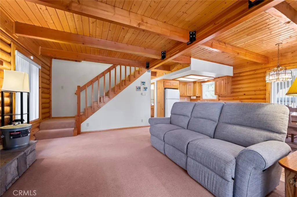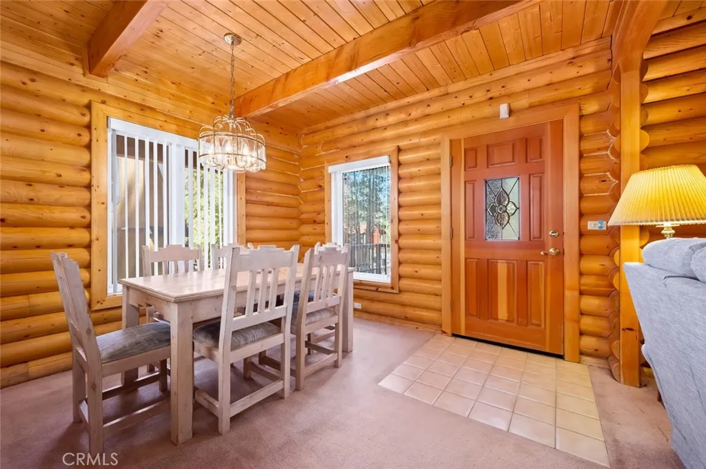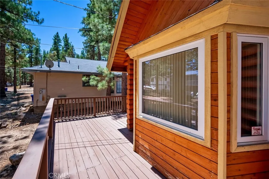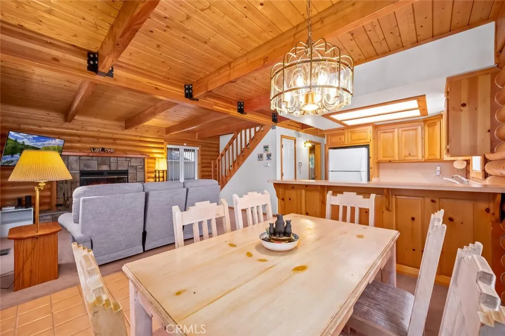 RARE find Erwin Lake Area and now it can be yours. This Full Log Cabin Home really delivers!! Experience the easy going vibe of rural living. Nestled in the peaceful and desirable Mitchell side of Highway 38. Convenient to all of Big Bears many attractions including ski slopes, Big Bear Lake, The Village Shopping and Restaurants, National Forest Hiking Trails, Off Road Trails, easy highway access and much more. This cozy full log cabin home is really Something Special offering interior features that include a spacious downstairs living area that includes log interior walls, forced air heating, wood burning fireplace, full kitchen with natural gas cooking a breakfast bar countertop and a separate dining room area. Rounding out the downstairs is a spacious bedroom, full bathroom and inside laundry room. The 2nd story living space features two very large bedrooms and a shared bathroom with a walk-in shower. Exterior features include superior curb appeal, dual pane windows, wrap around front porch deck, concrete parking space for at least two cars, 8x12 storage shed, large frontage area for additional parking. The backyard features a roomy covered patio that is very relaxing and tranquil, the backyard is also fully fenced offering security and privacy. This home can be utilized for many different byer needs including primary residence, second home, vacation or fulltime rental income too.