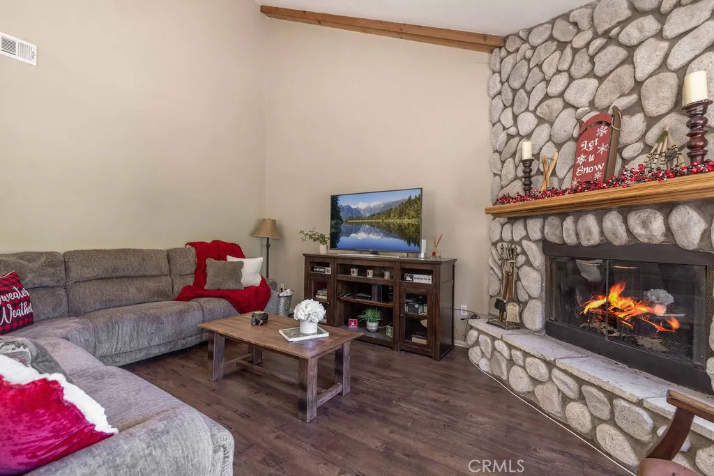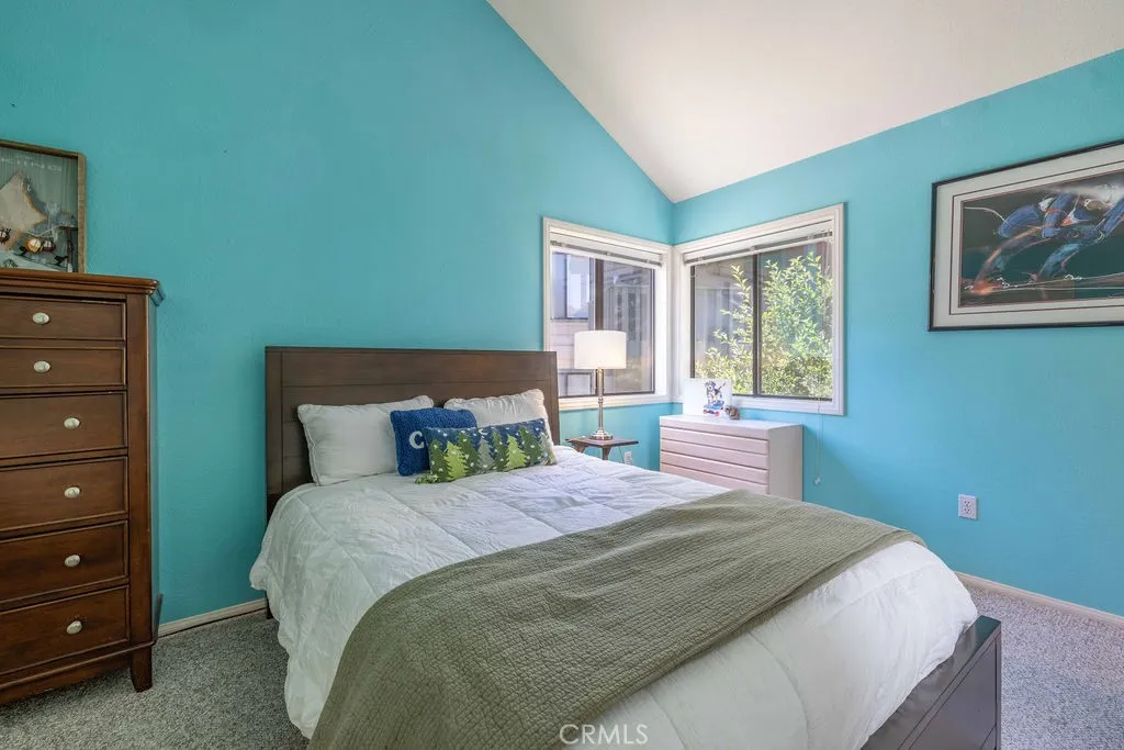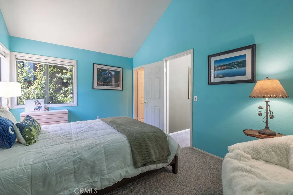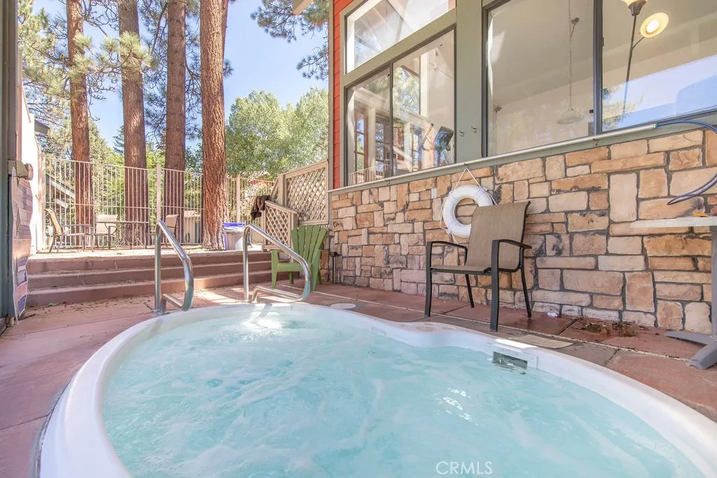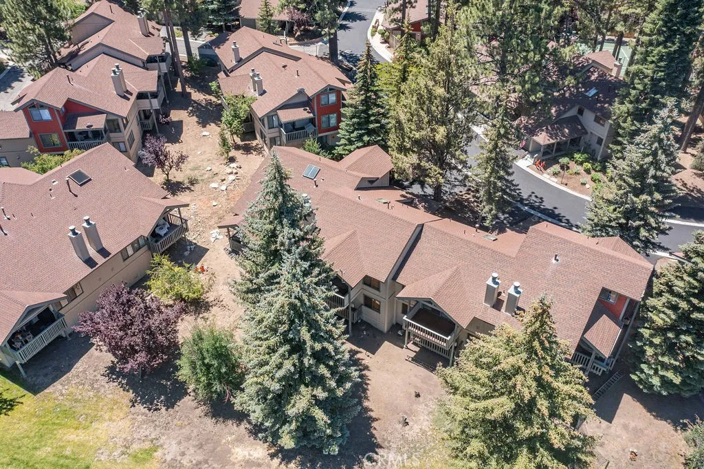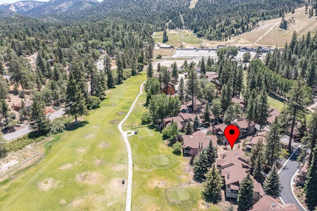Located directly across from Bear Mountain Ski Resort and overlooking the 2nd tee of Bear Mountain Golf Course, this desirable Bear Meadows end-unit condo is perfectly positioned for year-round enjoyment. With one of the best locations in the community, it offers unbeatable access to skiing, golfing, hiking, and bikingmaking it an ideal mountain getaway or investment property. This spacious 2-bedroom, 2.5-bath condo features vaulted ceilings with exposed beams, a cozy rock fireplace, and an open-concept living and dining area that opens to a covered back deckwonderful for relaxing or entertaining in the fresh mountain air. The kitchen is upgraded with granite countertops, ample cabinet space, and offers a comfortable layout. Upstairs, both bedrooms are en-suite, providing privacy and convenience for families or vacationing groups. Additional highlights include wood laminate flooring, Berber carpet, an attached garage with space for bikes and gear, and a rare extended driveway with room for larger vehicles. Bear Meadows offers premium HOA amenities including a clubhouse, spa, tennis courts, and fitness center. HOA dues also cover exterior maintenance, snow removal, and fire insurancemaking ownership easy and worry-free. Furnishings are negotiable, giving you the option to create a turn-key rental setup or personalize it as your own retreat. Whether you're looking for a full-time residence, vacation home, or short term rental, this property offers the best of Big Bear in one of the most sought-after locations.