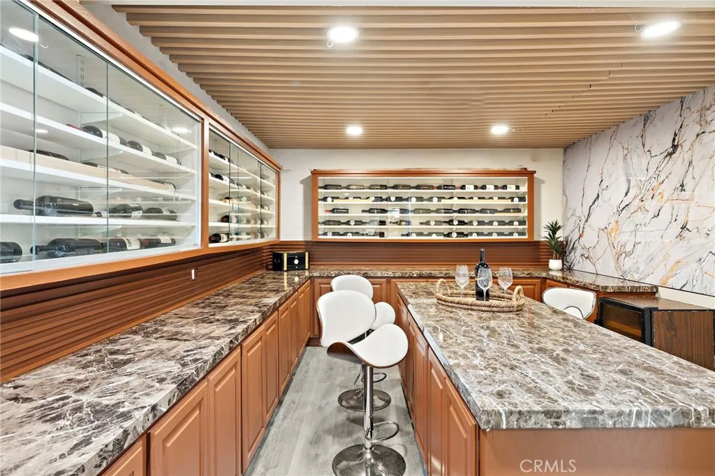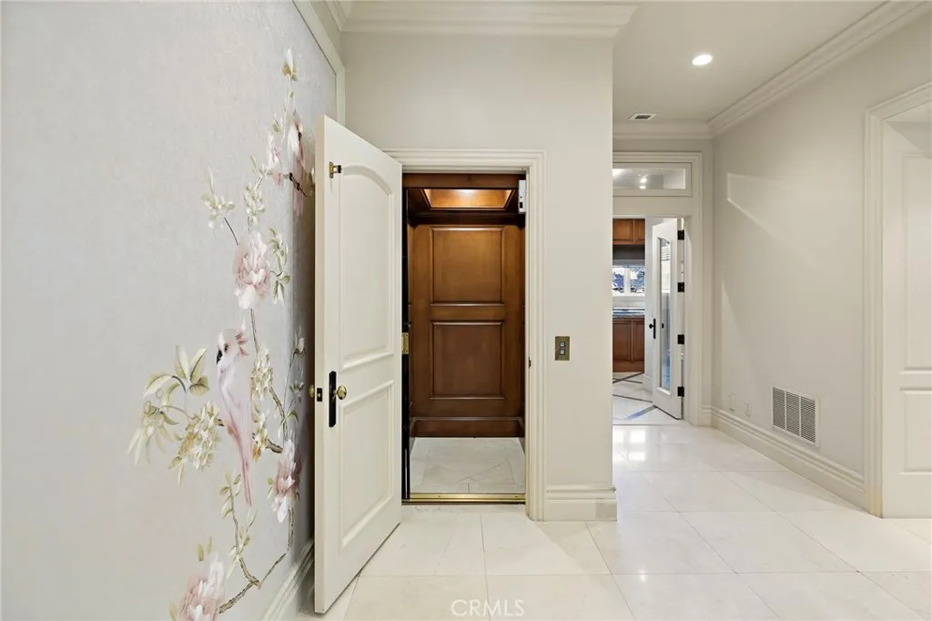 Discover unparalleled luxury at 9 Sawgrass, a spectacular 1.1-acre estate in the 24-hour guard-gated community of Coto de Caza. A grand driveway leads to a four-car garage and a stunning front entrance, setting the tone for the sophisticated design within. Step into a world of timeless elegance with soaring ceilings and large windows that bathe the home in natural light. The interior is a masterpiece of design, showcasing marble flooring, custom woodwork, brass fittings with cremone bolts, and a three-story paneled elevator. The main level is a resort-like retreat, featuring a formal living room with a floor-to-ceiling fireplace and coffered ceilings, and a separate dining room with its own fireplace for intimate gatherings. The gourmet kitchen is a chef's delight, complete with a six-burner stove, stainless steel appliances, and a separate wet bar. The main level is completed by a convenient bedroom, a dedicated office, and a laundry room. The exceptional design continues on the lower basement level, a true entertainer's dream. This space includes an oversized multipurpose room, a dedicated wine cellar, a state-of-the-art theater room, and a kitchenette. The lower level offers seamless indoor-outdoor living with direct access to the professionally designed backyard. On the top level of the home, enjoy the primary bedroom with a balcony overlooking the living room and stunning spa-like primary bathroom with a walk-in closet. The backyard is a private paradise, landscaped for ultimate privacy and tranquility. The centerpiece is a spectacular swimming pool and spa, complement