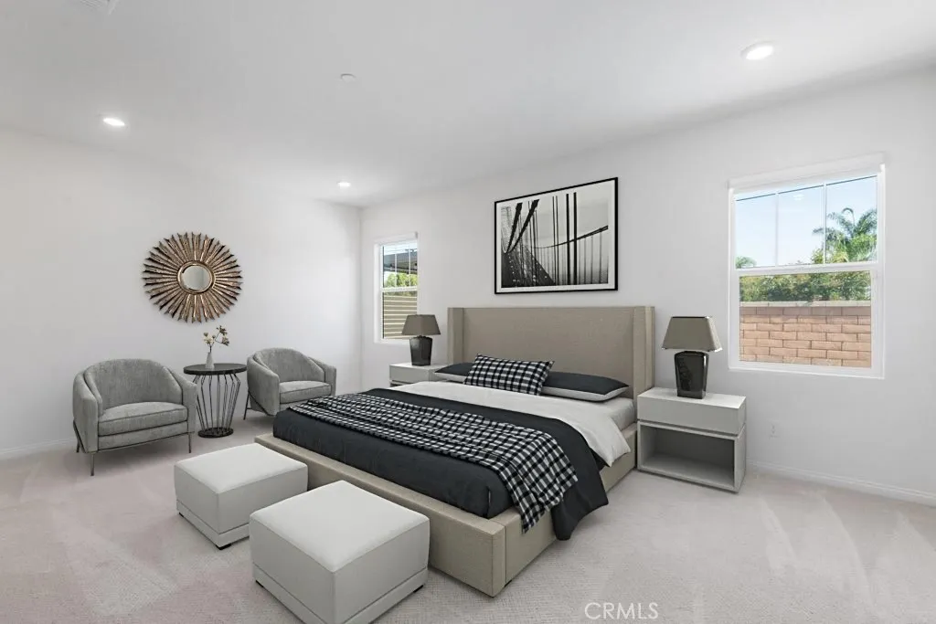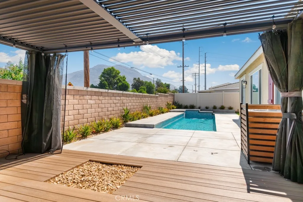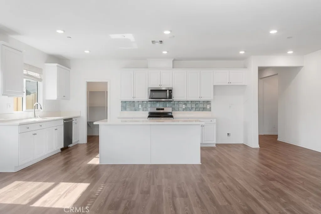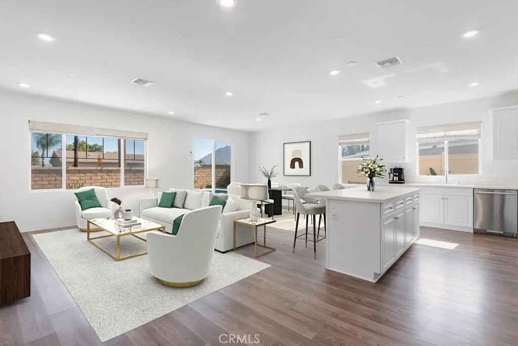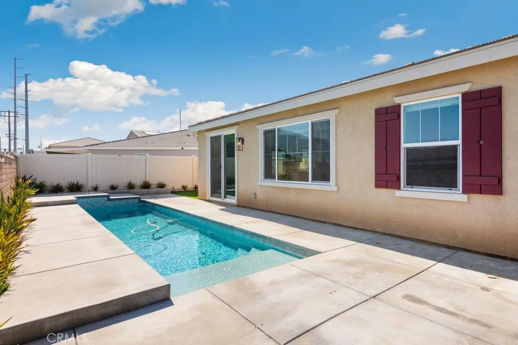 FULLY PAID SOLAR - SALT WATER/HEATED POOL in Spring Mountain Ranch! This stylish single-story features 4 beds, 2 baths, and 2,106 sqft of modern living with eco-friendly upgrades. Enjoy an open layout with 9-ft ceilings, a gourmet kitchen with quartz counters, white cabinetry, island, and BOSCH stainless appliances. Durable laminate flooring and recessed LED lighting add a sleek touch. The spacious primary suite offers dual sinks, a walk-in shower, and ample closet space. Solar panels, low-flow fixtures, and smart insulation help cut utility costs. Step outside to your private pool and enjoy scenic community living with trails, parks, and sidewalks. Just minutes to UC Riverside, Downtown, and Loma Linda Medical Center. Zoned for Riverside Unified schools.