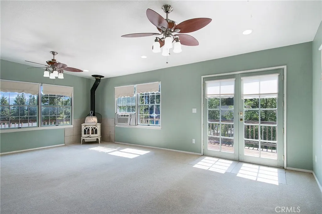 Surrounded by towering pines and fresh mountain air, this 2-bedroom, 2-bath home offers 1,433 sq ft of comfortable living space on a 5,850 sq ft lot in the heart of Big Bear. Expansive windows and multiple French doors bathe the interior in natural light, while vaulted ceilings add rustic charm. The spacious living area opens to a wraparound deck, perfect for outdoor entertaining, and one upstairs bedroom enjoys its own private balcony with serene treetop views. The bright kitchen features ample cabinetry and easy access to the dining space. Ideally located near Big Bear Lake, hiking and biking trails, ski resorts, and the shops and restaurants of The Village, this property offers the perfect blend of year-round living and vacation retreat potential.