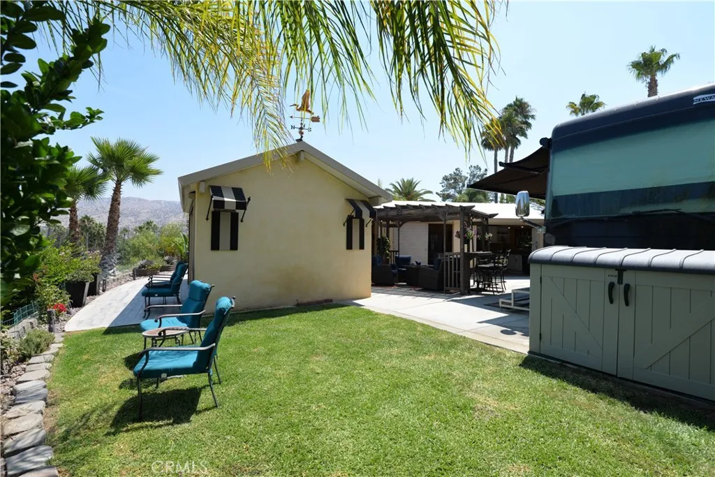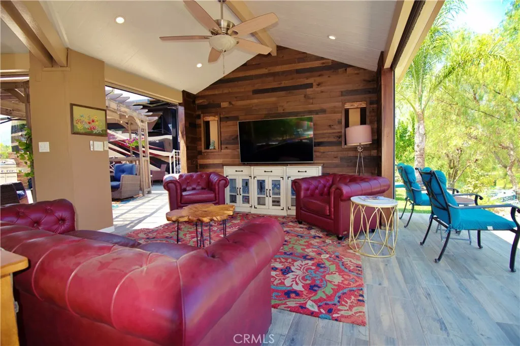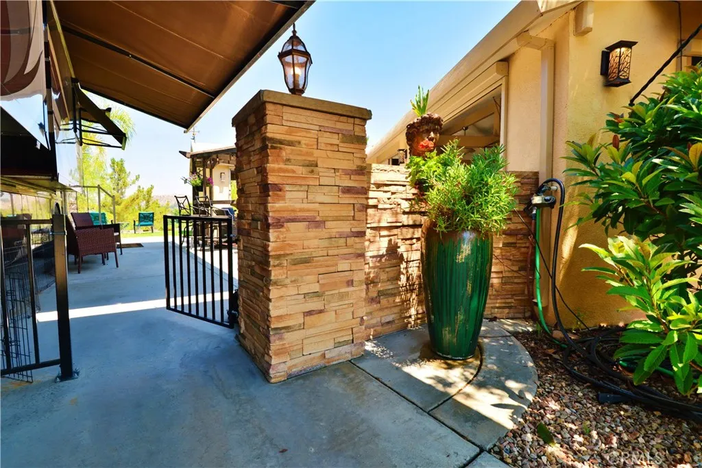 Welcome to THE TOP OF THE WORLD! This cul-de-sac RV lot with custom buildout has sweeping views of mature landscape, golf course, water features and surrounding countryside. Just twenty minutes outside of Temecula, Ca. in the hills of wine country, this sought after property is a must see! With Palm Desert and high end shopping on El Paseo forty five minutes away and the coast just over an hour, this resort RV lot is the ultimate in Southern California living. The lot itself is one of the largest parcels within the resort and provides ample room for your Class A or Super Coach. An established shade tree and mature 12 foot hedge, frames the space and welcomes you into privacy and luxury discerning clients expect. A custom buildout with well appointed fixtures, recessed lighting and design is impressive. Galley style Chefs kitchen with large center island offers custom cabinetry, spice drawers, granite counters and residential grade appliances. Multiple custom electric screens controlled with remotes combined with easy glide sliding screens opens to incredible views, summer time breezes and endless evening stars. Under a pitched 12 foot roof you'll find a laundry area, large dining area with chandelier, open living room for comfortable living, entertaining or just unwind from a day on the golf course. The porcelain tile floor extends beyond the covered living space and onto a panoramic style patio and lawn. The resort boasts a 14 hole executive golf course, 5 pools, spas, tennis courts, pickleball, dog park, general market, restaurant, laundry facilities/showers, fishing lake
