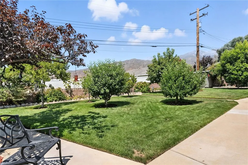 Huge price reduction!!!!!!!! Charm Starts Here in This Immaculate Mr. Clean Home! Newly improved with new 30 year comp shingle roof, new 4 ton HVAC system, new 200 AMP electrical panel. This view home is now available. Nestled in the scenic hills of Yucaipa, this darling 1966-built home offers over 1,800 sq. ft. of pristine living space, two large bedrooms, and sweeping mountain views from an enchanting backyard oasis with fruit trees. Step inside to a spacious living room with a formal dining area framed by picture windows. The home has beautiful wood floors. The inviting family room features vaulted ceilings and a cozy fireplace, creating the perfect spot for gatherings. A versatile bonus room includes extra storage, making it ideal for a home office, craft room, or guest space. The remodeled kitchen boasts gorgeous granite counters, custom cabinetry, a convenient eat-on bar, and a charming dining nook. Both bedrooms are generously sized, with the main bath showcasing a separate shower and soaking tub all beautifully redone in granite. Included in the bath are dual sinks and a vanity area. Outdoors, enjoy a large covered patio surrounded by mature fruit trees, perfect for relaxing or entertaining while taking in the stunning mountain views. The 2-car garage offers abundant storage and direct access into the home for convenience. Highlights: 2 spacious bedrooms, 2 full baths! Family room with vaulted ceilings & fireplace! Bonus room with vaulted ceilings, windows, and extra storage! Remodeled kitchen with granite counters, breakfast bar & dining nook! Main bath custom don