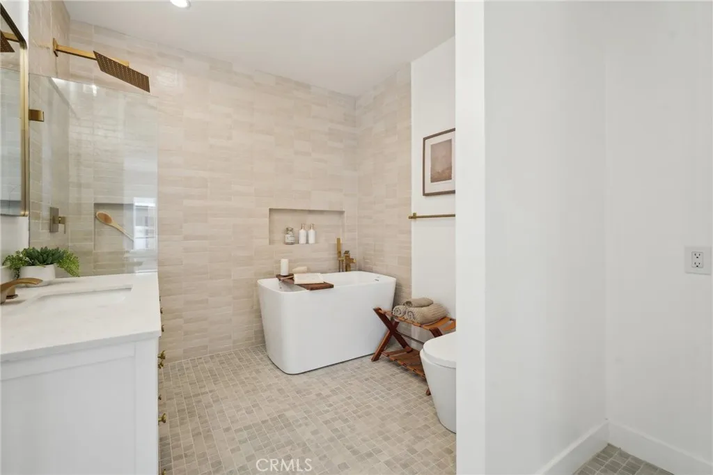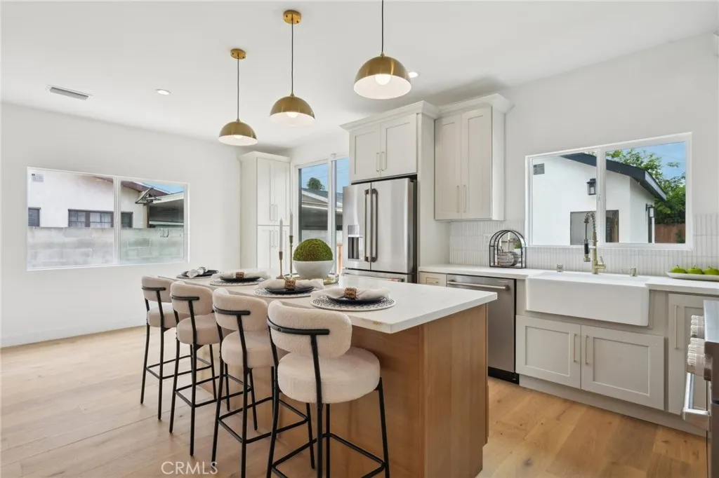 Seller May Contribute toward a rate buy-down or buyers closing cost. Completely renovated from top to bottom, this 3-bedroom, 2-bathroom residence with modern upgrades, including new windows, electrical, plumbing, HVAC system, and main sewer line. The open-concept living space features a bright and airy design with a spacious kitchen with quartz countertops, a breakfast area, and new stainless steel appliances, including a stove, oven, refrigerator, and dishwasher. A bonus area provides the perfect space for a home office, adding flexibility to the layout. Enjoy your mornings or entertain guests on the expansive deck, accessible from both the kitchen and the primary suite, while overlooking the beautifully landscaped backyard with a new sprinkler system. Additional upgrades include a brand-new tankless water heater for maximum efficiency. Adding incredible value to this property is the newly built 1-bedroom, 1-bathroom Accessory Dwelling Unit (ADU) at 5449 1/2 S Victoria Ave. This designed space boasts a modern kitchen with quartz countertops and new stainless steel appliances, including a stove, microwave and refrigerator. The living area, in-unit laundry, and brand-new electrical, plumbing, windows, and mini split make this ADU completely move-in ready. Like the main home, it also features new wide-plank engineered flooring throughout. Whether you're looking for a rental income opportunity, guest house, or additional living space. This home is within walking distance to the Crenshaw metro line and popular shops and eateries like Jon & Vinny's and just minutes from Kenneth