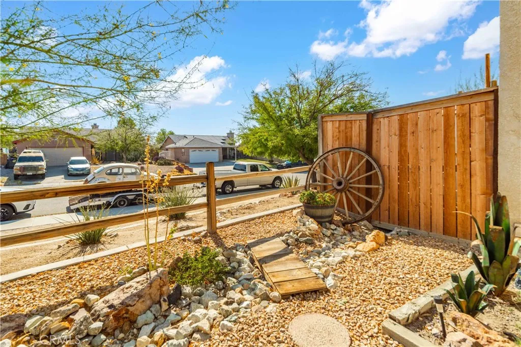 You will not want to miss out on this stunning ''Desert Oasis''! This beautifully maintained landscape is ''all that'' and more. Step inside to a bright and welcoming 3 bed 2 bath home that offers the perfect blend of comfort and easy maintenance. Ideal for the first time homebuyer and features a beautifully designed xeriscape yards(low water, low maintenance)which allows you to enjoy the outdoor space without the hassle. Inside you'll find a warm and inviting layout, functional kitchen that opens to the backyard. The rooms are comfortable in size with 2 full bathrooms. The 2 car garage is attached and sizable for the laundry area. The driveway has extra space for an additional vehicle .The location is convenient for work on base and local shopping. The 14 freeway is near by for a quick trip anywhere. Don't miss your chance for this little gem!