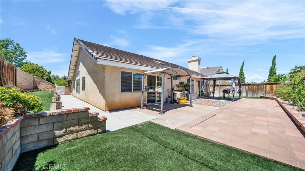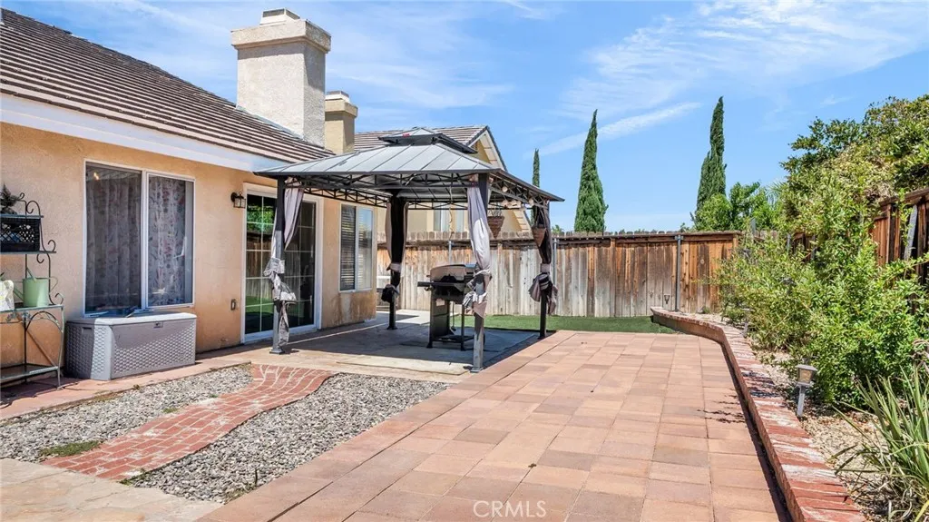Welcome to this spacious and well-cared-for single-story home in a quiet Palmdale neighborhood. With 4 bedrooms, 2.5 bathrooms, and 1,824 square feet of living space, this residence offers a functional layout and a rare three-car garage, ideal for both growing households and buyers in need of extra storage or workspace. Inside, youll find a bright, open floorplan with durable ceramic tile flooring throughout and abundant natural light. The formal living and dining rooms offer a welcoming space for gatherings, while the generously sized family room features a fireplace and opens to the kitchen for comfortable everyday living. The kitchen has been stylishly updated in recent years with quartz countertops, white cabinetry, and stainless steel appliances, blending a clean, modern look with practical function. All four bedrooms are generously sized, including a primary suite with an en-suite bath and ample closet space. Two additional bathrooms, one full and one half, offer convenience for family and guests. Upgrades include an updated electrical panel, newer finishes, and a fully landscaped front and rear yard that provide a move-in-ready feel with low maintenance outdoor living. The oversized three-car garage adds exceptional value, whether for parking, storage, or weekend projects. Located near local schools, shopping, and commuter routes, this home offers space, curb appeal, and functionality in one of Palmdales most established residential communities.