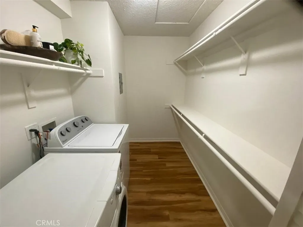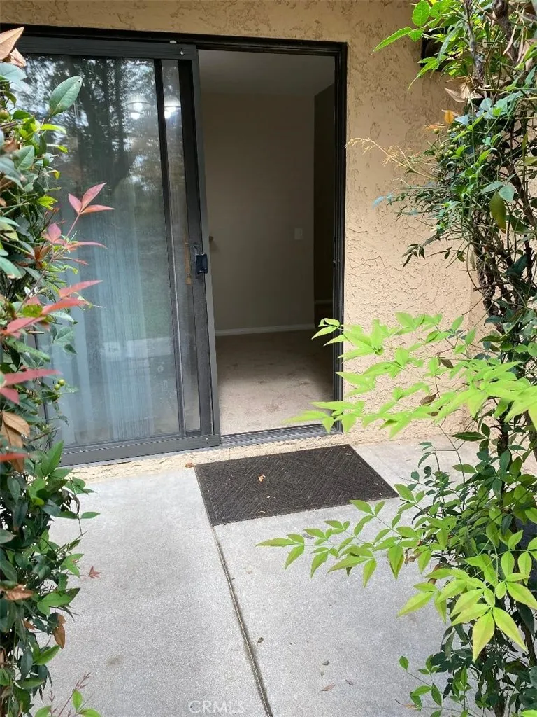 This unusual single story 2 bedroom and 2 full bathroom unit is a charmer. It has the unusual feature of having its own washer and dryer hook ups located in master closet, so the HOA laundry facility is not required, but it is still available. Air conditioner and water heater fairly recently replaced. Quiet community with tall trees. HOA has a community pool and jacuzzi. This unit has a one car garage as well. The unit has a birds eye view of the community below. The views and feel of the community are very desirable and peaceful. New carpet to be installed on October 8. Interior has been painted and also has new blinds.
