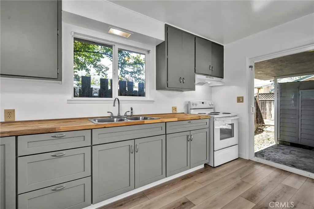 Cute downtown Lakeport home! 2bed/1bath home a block up from the Lake and within walking distance to all local restaurants, shopping & public transit. One story, new flooring, new kitchen with butcher block tops, int/ext paint, hot water heater and electric oven. Currently has monitor heater and wood burning fireplace for heat. Decent backyard with covered patio, and extra parking along side of home. Attached carport. Home is on public water/sewer and is all electric. Would make a great first time or investment/rental type home with central location!