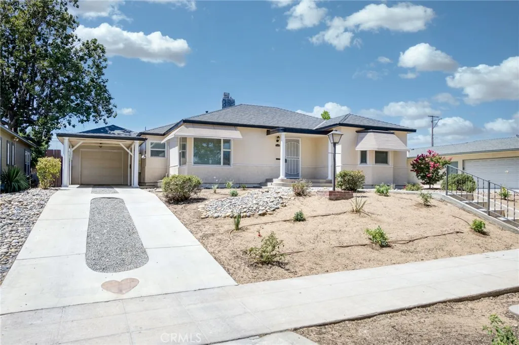 CHARMING 3 bedroom 1 bathroom home w/ 1 bedroom and small bathroom w/ private entrance off garage! Plus 1 car garage. Upon entry, the welcoming living area w/ beautiful HARDWOOD floors boast plenty of natural light. Pretty fireplace w/ black tile to match exterior trim. Cozy kitchen w/ built-ins and a perfect little breakfast nook w/ door leading to backyard. Kit and bath are tile floors. Hardwood floors thru-out except 1 bedroom has new carpet. New carpet in back bedroom as well. Dual pane windows thru-out. Out back you have a grassy areas, cement patio for table and chairs and extra parking off the alley. Super cute and driveway has cement heart in middle!