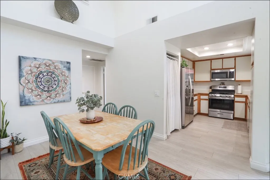EXCEPTIONAL END UNIT LOCATION WITH VIEW, CARRIAGE STYLE FLOOR PLAN OFFERING 2 BEDROOMS PLUS LOFT WITH HIGH CEILINGS AND GARAGE! Large living and diningroom with two story ceilings, delightfulkitchen with stainless steel appliances and window overlooking the large private deck and plenty of natural light! Loft is perfect as a large home office or can be the 3rd room. Master suite with walk-in closet and upgraded master bathroom with marble vanity, upgraded walk-in showerwith frameless glass enclosure and upgraded fixtures, large 2nd bedroom and full second bathroom. Convenientlylocated inside laundryarea, upgraded laminate wood flooring, Private deck is perfectly positioned to enjoy the views and your outdoor entertainment. Community pool and spa and lush greenbelts nearby. Excellent proximity to nearby shopping, easy toll road (241) and freeway access (via Bake Parkway), Irvine Spectrum with shops, restaurants and entertainment and nearby hiking, biking and nature trail!
