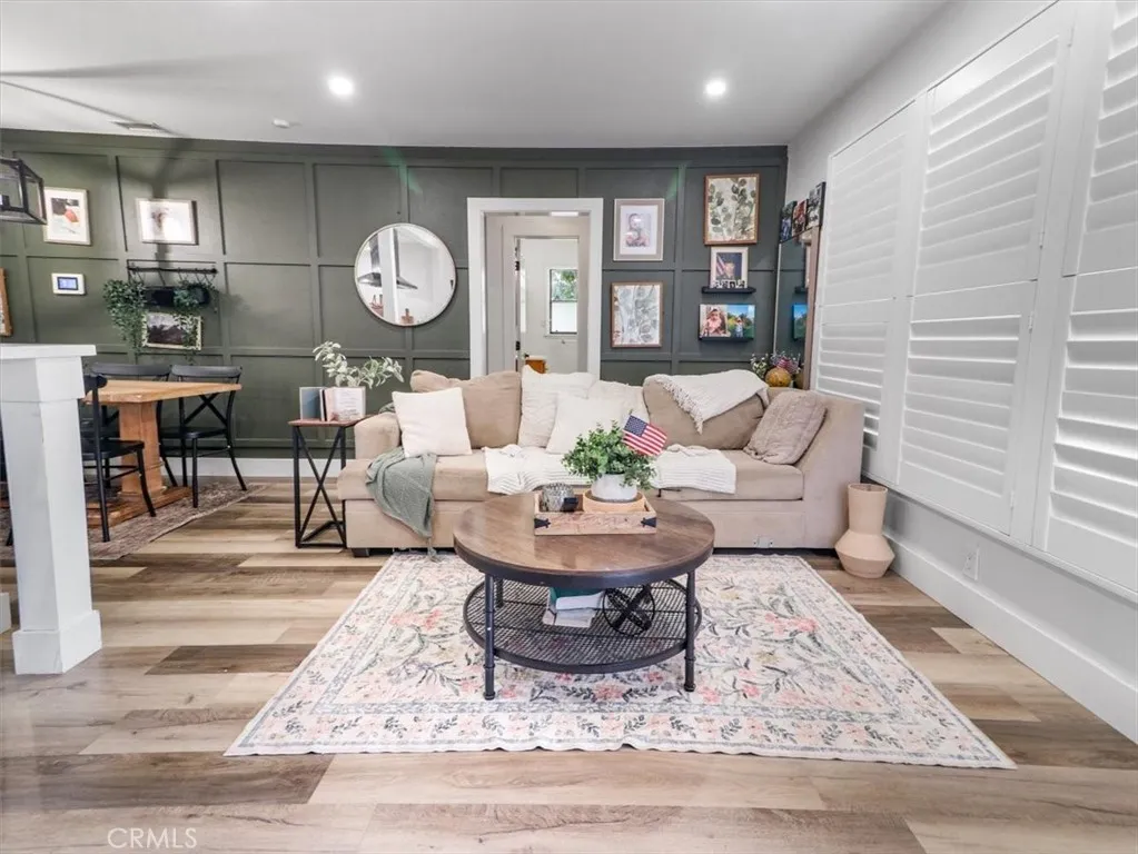 Welcome to The Island, one of Northwest Downeys most beloved neighborhoods. This charming single-story corner-lot home has been thoughtfully updated for todays lifestyle. Step inside to an inviting open layout where a custom accent wall, warm designer lighting, and vinyl plank flooring create a cozy, stylish feel. The kitchen is the heart of the home, featuring quartz countertops, crisp white shaker cabinets, a patterned backsplash, and a sleek vent hoodperfect for cooking and gathering. The dining area opens to a covered patio and a spacious backyard lined with mature fruit trees and mature grapevines, offering a private space to relax or entertain. With three comfortable bedrooms, two baths, fresh exterior paint, central A/C & heat, dual-pane windows with plantation shutters. Plenty of street parking on two sides of the corner lot home, with an attached 2-car garage, this home blends comfort and convenience. Situated around top-rated Downey schools, shopping, dining, and quick freeway access just minutes away from the 5 & 710.