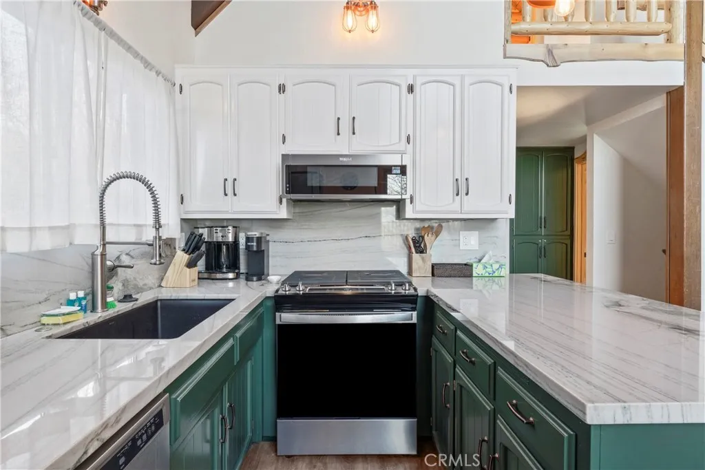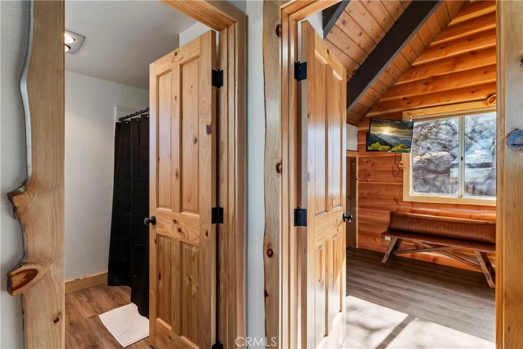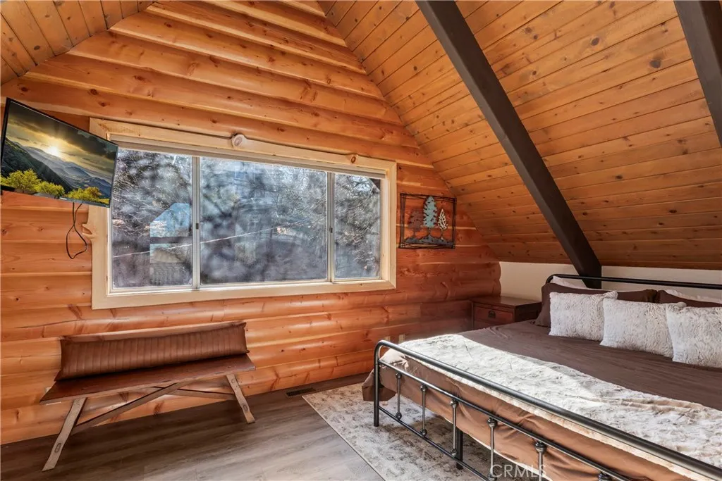 Beautifully updated 4-bedroom, 3-bath log-sided home with coveted full lake rights, perfectly situated in the serene mountain community of Lake Arrowhead. This spacious almost level-entry home offers approximately 1,600 sq/ft of thoughtfully designed living space, ideal for both full-time living and vacation getaways. Step inside and be welcomed by a bright, open floor plan designed for entertaining. The main level features soaring vaulted ceilings, a grand stone fireplace, and wood-trimmed custom windows that showcase this space in natural light while framing tranquil forest views. The fully renovated kitchen seamlessly flows into the dining and living areas, creating the perfect space for gatherings, celebrations, or cozy nights. Two generously sized bedrooms and a beautifully remodeled full bathroom, highlighted by chunky wood trim throughout, complete the main level. Upstairs, a private loft-style en-suite bedroom offers a peaceful retreat with its own full bath, perfect for guests or a quiet office. The lower level features a large, separate en-suite bedroom with remodeled bath, spacious living area, and ample storage. Outdoor living is equally impressive with an expansive wrap-around deck that offers abundant space for entertaining, dining al fresco, or simply relaxing while enjoying stunning mountain sunsets and crisp mountain air. Located just minutes from Lake Arrowhead Village, the marina, schools, and local amenities, this home strikes the perfect balance between peaceful mountain living and convenient access. Fully renovated and possibly turnkey, this home blend