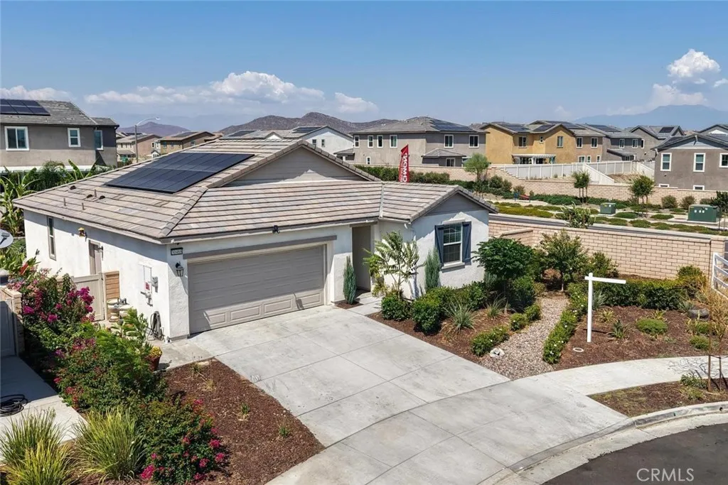 Welcome to this stunning 3-bedroom, 2-bathroom home, perfectly situated on a peaceful cul-de-sac with no side neighbors offering rare privacy and tranquility. Just two years old, this beautifully maintained property combines modern design with thoughtful details throughout. Step inside to an open-concept layout with abundant natural light, ideal for both everyday living and entertaining. The gorgeous kitchen features stylish finishes, stainless steel appliances, and a large island overlooking the living and dining areas. Enjoy the serenity of beautifully landscaped outdoor spaces, perfect for morning coffee or evening relaxation. The backyard offers room to garden, play, or even add a pool with enhanced privacy thanks to the unique lot placement. Other highlights include a generous primary suite with a walk-in closet and en-suite bath, PAID solar, two additional well-sized bedrooms, and a two-car garage. Because of the lot size and placement there is potential to add RV parking! Dont miss your chance to own this exceptional home in a new development. Schedule your showing today!