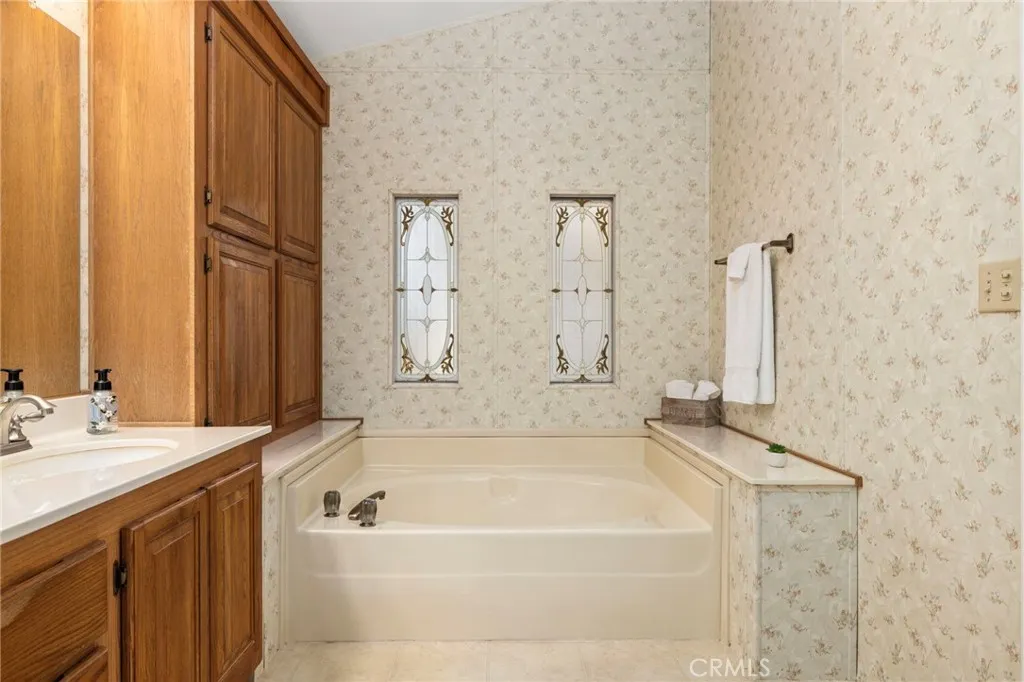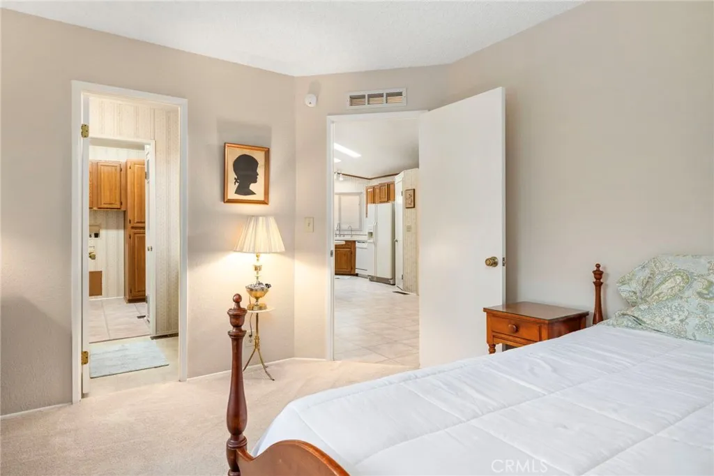 Beautiful home perched on a knoll and cul-de-sac in the gated 55+ community of Camino Hills, with double attached garage and sunroom. Hidden gem, on a cul-de-sac, nestled in the hills of Carlsbad amongst multi-million dollar homes. You own the land with this desirable manufactured home. High ceilings and abundant light welcome you to this roomy two-bedroom, two bath home with central/forced air and dual pane windows. The living room and dining room feature plantation shutters. There is a large family style kitchen with RO water system and walk-in pantry. It offers generous cabinetry for storage and counter space to prepare food. The gorgeous master ensuite and sunroom both offer views of the yard with pine trees and nature. The bright and airy sunroom, included in the square footage, provides easy access to your double car garage and beautiful yard. The master has two closets and large bathroom with dual sinks, separate tub, and walk-in shower. The 2nd bedroom also features a large closet, and bathroom with walk-in shower. The Home has a separate laundry room with plentiful cabinets and a utility closet. The Double car attached garage offers a workbench, room for 2 cars and storage as well as direct access to the home. There is a lovely landscaped yard, with automated sprinklers for easy maintenance to care for the beautiful flowers, trees and plants. Side landscaping includes two newer shared avocado trees, along with an orange tree in the front. The roof is newer, just 5 years old, and the home has rain gutters. Nice front footage and wide driveway for two cars leading to