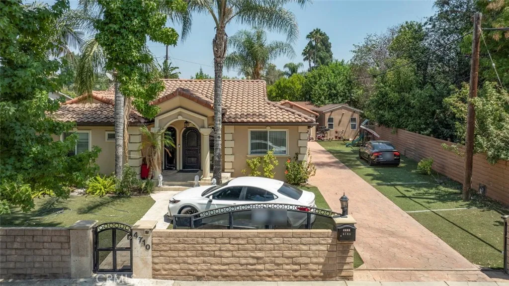 Location, Location, Location! Situated North of Ventura Blvd in the heart of Sherman Oaks, this stunning Mediterranean-style home has it all pool, jacuzzi, ADU, and so much more! Privately gated with a spacious driveway that accommodates multiple vehicles, this property boasts gorgeous curb appeal with Spanish tile roofing, modern dual-pane windows, a custom front door, security cameras, and mature palm trees that frame the entrance. Step into an entertainers dream: a large covered patio, a beautiful pool with a jacuzzi and waterfall feature, and an interior designed to impress. Enjoy remodeled bathrooms with custom stone finishes, recessed lighting, laminate flooring, and a grand dining room adorned with custom Venetian-style paint and luxurious drapery. The home is also equipped with built-in surround sound speakers. The modern kitchen features sleek cabinetry and quartz countertops, perfect for both everyday living and entertaining. A detached ADU offers an incredible opportunity for additional income or guest accommodations. Don't miss your chance to own this entertainer's paradise in one of LAs most desirable neighborhoods. Come fall in love!