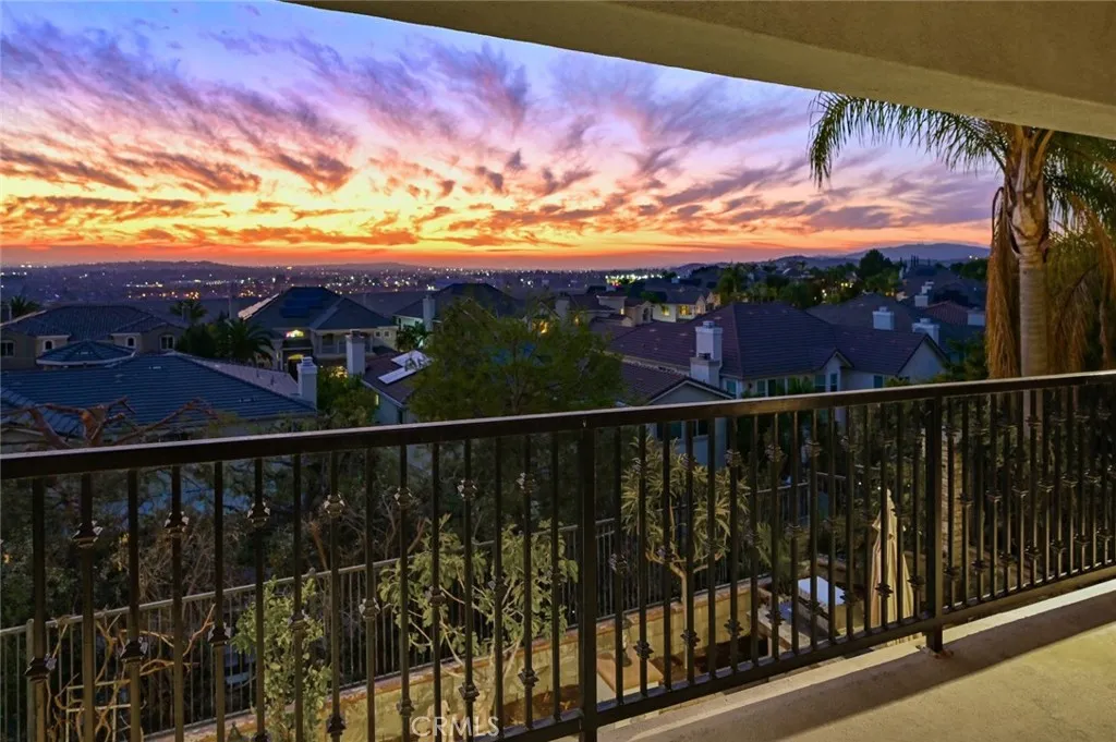 Sweeping Panoramic Views from Elegant Montecito Pool Estate ... Built by Toll Brothers High in the Hills of Yorba Linda in the Luxurious Master-Planned Golf Community of Vista Del Verde - Premium View Lot Overlooks Catalina, Sparkling City Lights & Disneyland Fireworks - Spacious Silverado Floorplan Offers 5 Bedrooms and 4.5 Bathrooms (Including a Main Floor Bedroom with En-Suite Bathroom) Plus an Office Loft, Library & Retreat/Exercise Room - Approximately 5,213 Square Feet of Living Space - Impressive Double Door Entry Opens to Soaring Two-Story Foyer - Custom Window Coverings & Beautiful Crown Moldings Throughout - Handsome Library - Formal Living Room with Fireplace Formal Dining Room with Custom Chandelier - Gourmet Kitchen Features Extensive Cabinetry, Granite Countertops, Walk-In Pantry, Dual Center Islands, Breakfast Eating Nook, and Newer Appliances, Including Built-In Stainless-Steel Refrigerator - Kitchen is Open to Huge Family Great Room with Fireplace & Built-In Media Niche - Oversized Primary Suite has Large Walk-In Closet and Private Solid Covered Balcony Deck with Scenic Views - Primary Bathroom Offers Dual Vanities, Jetted Tub and Walk-In Shower with Seat & Dual Shower Heads - Upstairs are 3 Additional Bedrooms, Including a Jr Suite with Walk-In Closet, En-Suite Bathroom and Private Balcony - Also Upstairs is an Office Loft, Plus Separate Retreat/Exercise Room (this was Builder's Optional Princess Suite with 6th Bdrm & Bath) - Convenient Inside Laundry Room with Sink, Built-In Cabinetry & Space for a Second Refrigerator - Peaceful & Private Low-Maintenance