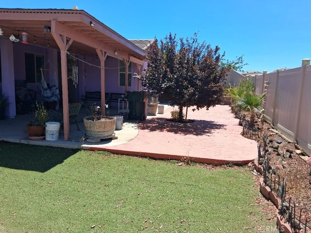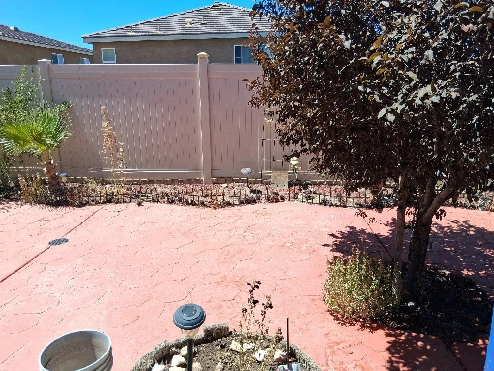 Highly Desired Move-In Ready Single-Story Home Step into this spacious single-story home featuring soaring ceilings and an inviting open layout. Enjoy a huge formal living room and a comfortable family room, perfect for gatherings. The customized bedroom wood closet offers ample space to organize your personal items, while the functional kitchen island makes cooking a breeze. Elegant plantation shutters run throughout the home, adding charm and style. Outside, the covered, stamped-concrete patio creates the ideal space for entertaining guests and enjoying your own private retreat, complete with mature fruit trees. Leased solar system with 12 panels at $91/month. Conveniently located near schools, parks, shopping centers, and freeway access this home combines comfort, style, and convenience.