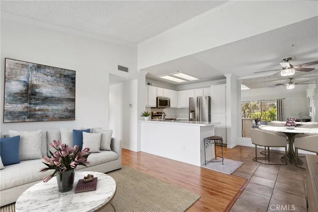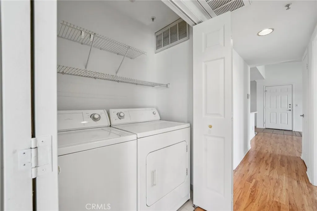 VIEWS VIEWS VIEWS! Turn-Key North Corona Condo with a top level view of Parkview Park! This Move-in ready 2 bedroom / 2 bath, 941 Sq Ft home is located within the desirable Triana gated community. The interior is SPACIOUS and OPEN, offering lots of NATURAL LIGHT, HIGH CEILINGS, FRESH PAINT, NEW CARPET flooring in bedrooms, two PRIVATE BALCONIES, a 1-CAR GARAGE, and 1 ADDITONAL PARKING SPACE. The living room with wood look laminate flooring opens to the kitchen with NEWER STAINLESS STEEL APPLIANCES which include the refrigerator, dishwasher, electric range, and microwave. The kitchen also offers tile floors, breakfast bar seating, and dining area. Both of the bedrooms are generously sized and have balcony access, the primary bedroom also has a private ensuite with vanity and large soaking tub/shower combo, and there is a full-size hall bathroom for the secondary bedroom and guests to share. An in-unit laundry closet with included washer and dryer complete the floor plan! Residents also get to enjoy a sparkling pool and spa, an indoor gym and there is also a clubhouse and outdoor dining areas near the pool! The clubhouse can be used for gatherings and parties. Owner only pays for electricity in this home. The water, gas, trash, and landscaping are all included in the HOA fee! This home is conveniently located near parks, schools, as well as the huge shopping and dining center off of McKinley St! Also easy access to the 15 and 91 Fwys! Do not Miss Out On This One! Schedule your private tour today!