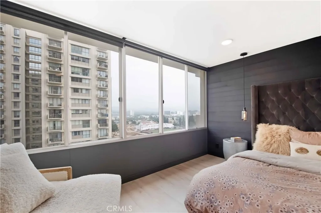 BREATHTAKING JETLINER VIEWS from every room! Experience luxury high-rise living in this beautifully remodeled residence at 2170 Century Park East #1104, offering sweeping panoramic vistas of Beverly Hills, Century City, and the Hollywood Hills. This sophisticated home features light oak-style floors, sleek Caesarstone countertops, and a thoughtfully redesigned bath all showcasing impeccable taste and quality finishes. Smart home features include recessed lighting with Wi-Fi-enabled switches, Alexa-compatible under-cabinet LED lighting, in-ceiling surround sound, and fiber-optic high-speed internet connectivity throughout. The open-concept living and dining areas are framed by wall-to-wall windows and sliding glass doors, filling the space with natural light and creating seamless indoor-outdoor flow onto a private balcony, perfect for morning coffee or sunset cocktails. Additional highlights include a custom Elfa closet organization system, a polished concrete balcony floor, and a pet-friendly layout. The spacious kitchen boasts a clean, modern aesthetic, featuring ample cabinetry, stainless steel appliances, and a generous island that is ideal for casual dining or entertaining. Building amenities include 24-hour security, valet parking, a full-service concierge, Olympic-sized swimming pool, fitness center, tennis court, dog park, and lush grounds, all just minutes from Westfield Century City, Beverly Hills, and world-class dining and entertainment.