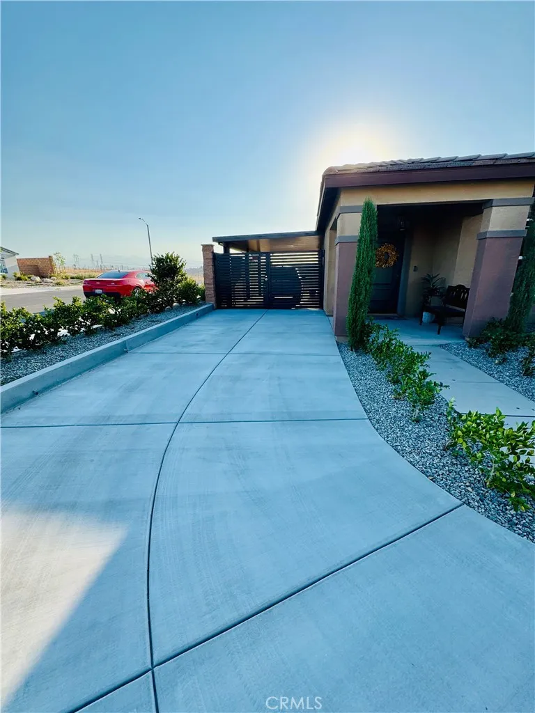 *****Major Price Improvement***** Just like Brand New!! Barely been lived in. Blt. in 2024 with lots of UPGRADES without the wait! You would pay much more with the builder to have all of these luxurious upgrades! ****Paid Solar!!****$20,000 in Extended concrete all around the house including an extra covered parking area with an AlumaWood stylish gate that gives the house the latest trending look! 18 x 50 back concrete deck that continues around both sides of the house and across the front. Landscaping and irrigation and drip system. Complete privacy on this oversized corner lot, secured by a big beautiful brand-new 6 foot block wall--no one will ever build behind you! Upgraded kitchen with Extended bottom cabinets and countertops with a wine refrigerator and floating shelves. Custom mosaic tile as kitchen backsplash. Double sink vanity in the primary suite and the sinks and the shower have never been used!! Blt. in bookshelves in one bedroom and floating shelves in kitchen and den. Metal overhead shelves in garage. Custom decorator wood wall on one wall in the living room. Upgraded light fixtures in Living room and dining room. Extra interior outlets, for total convenience! Upgraded front porch light fixtures. Exterior Security Camera and motion detection floodlights. Custom window shades. No money was spared in making this home complete!! All of the beautiful upgraded furniture can also be purchased! Just like a model home! You must see to appreciate!! Call me for a private tour. Agents please see private comments.