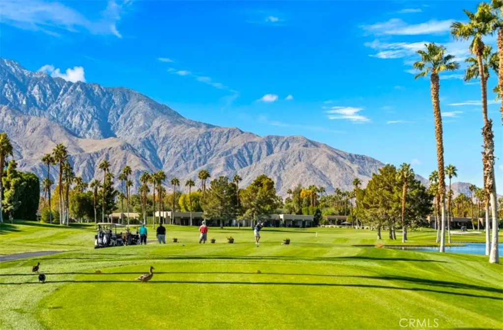 A rare premium view lot! Come see this newer (2019), mid-century modern desert home with 3 spacious bedrooms and 2 well-appointed bathrooms, nestled in the heart of Cathedral Citys vibrant Desert Princess Country Club. Enter through the private 24-hour guarded gate This sleek home with eclectic dcor and finishes, bodes quartz countertops, gorgeous herringbone design LVF flooring, and spa-like bathrooms. The primary suite is a serene retreat with a large walk-in closet, bathroom with dual sinks, a walk-in shower, and spa tub. The two additional bedrooms are roomy, ideal for guests or a home office. The kitchen shines with custom cabinetry, quartz countertops, stainless steel appliances, including a retro refrigerator (Samsung Bespoke), large pantry, and a bar-top for casual dining or entertaining. Enjoy the jaw-dropping views of the San Jacinto Mountains from a private salt water pool and spa with waterfall, a covered patio, and beautiful desert landscaping along the greenbelt. A Tesla charger (240Volts) is conveniently installed in the attached two-car garage, offering ample storage and functionality. As part of the Desert Princess community, this home comes with access to resort-style amenities: a 27-hole PGA championship golf course, 34 sparkling community pools and spas, tennis and pickleball courts, a renovated fitness center, spa and wellness center, and a lively clubhouse with a restaurant and bar. There are additional car charging stations modern convenience. The communitys social calendar keeps things engaging with events and activities, plus, you are just blocks a