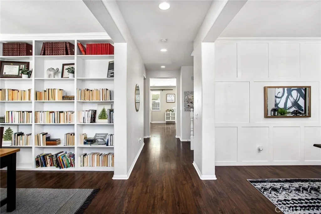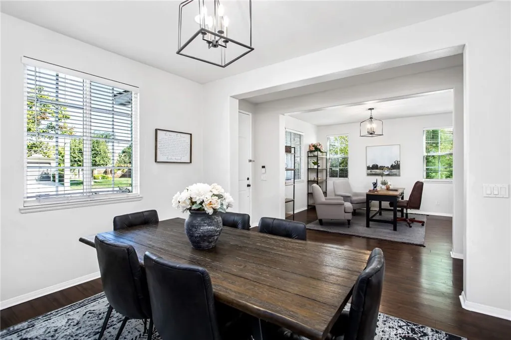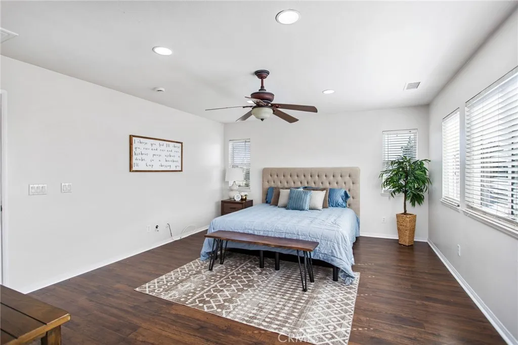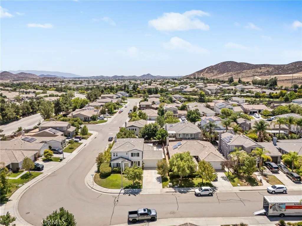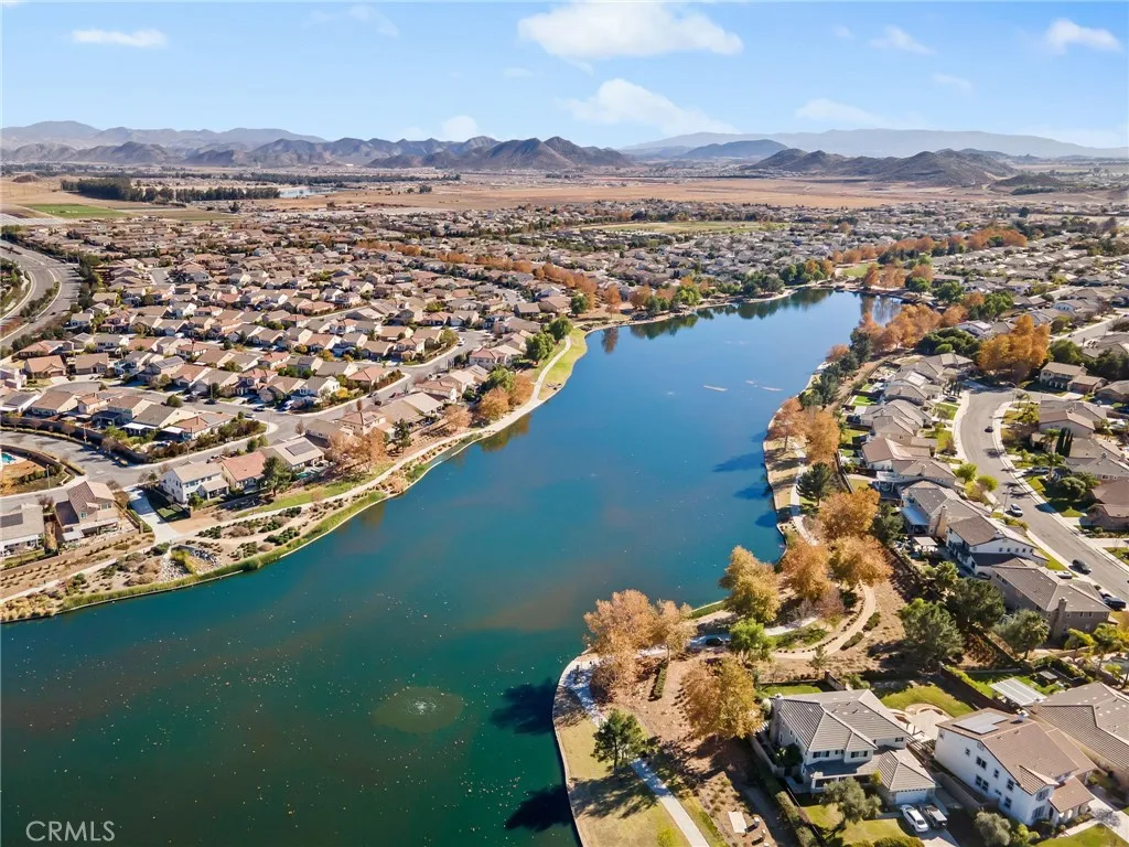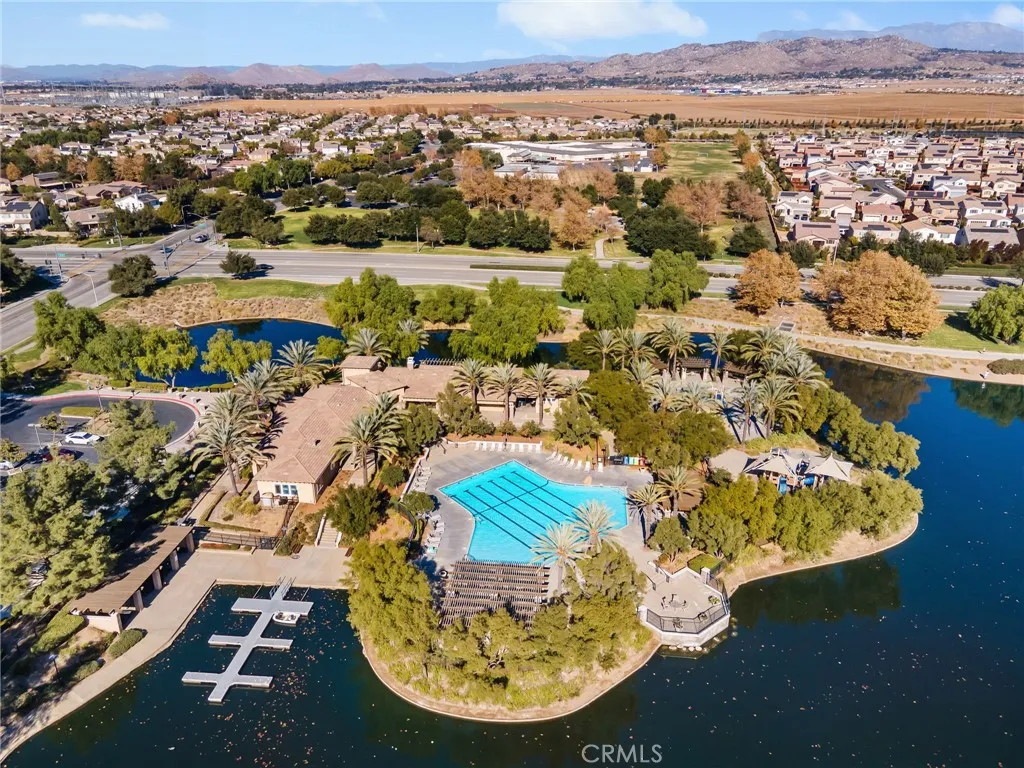 Located in the highly sought-after Heritage Lake community, this beautifully maintained 4-bedroom, 2.5-bathroom home offers over 2,400 square feet of spacious living on a desirable corner lot in Menifee. From the moment you arrive, you'll appreciate the curb appeal, expansive front yard, and the natural light that pours into every room. The flexible floor plan features multiple living areas and a generous kitchen perfect for hosting family and friends. All bedrooms are upstairs, including a spacious primary suite with dual sinks, a soaking tub, and a walk-in closet. Step into the backyard to find freshly laid sod and a covered alumawood patio, ready to be transformed into your own private outdoor retreat. Whether it's summer barbecues or quiet evenings under the stars, this space is made for enjoying Southern California living. Heritage Lake offers residents access to scenic walking trails, parks, a clubhouse, and a private lake. With shopping, schools, and freeway access just minutes away, this home offers the perfect blend of community, comfort, and convenience.