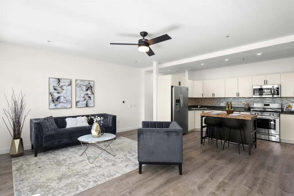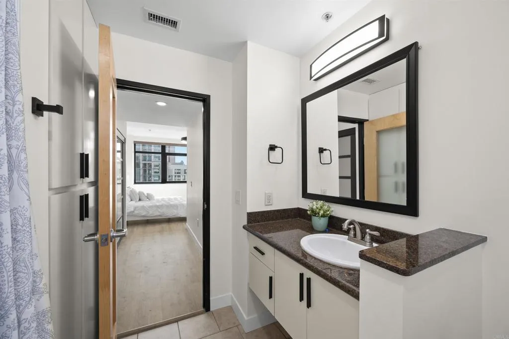 Find yourself home overlooking the downtown San Diego skyline with Southwesterly views from your turnkey condo at Solara Lofts. This spacious, open-concept layout invites natural light to flood the entire space, highlighting the brand-new LVP flooring that stretches across the living areas. The oversized primary bedroom offers ample space and a large closet. The bathroom has been updated with a newly resurfaced shower tub, elevating the space with a fresh, contemporary feel, and plenty of storage. The seamless flow from the living, dining, and kitchen areas creates the ideal space for both entertaining and relaxing. Step out onto your private south-facing balcony to take in the vibrant city views, whether it's sipping coffee in the morning or catching the sunset over the skyline. Convenience is key with in-unit laundry, a full-size washer and dryer, and two dedicated parking spaces. Plus, there's guest parking and a storage locker for your extra belongings. Enjoy all the perks of city living with a wine bar on the first floor, and a short walk to the lively neighborhood of Little Italy. Solara Lofts offers attractive amenities, including on-site management, a fitness center, saunas, bike storage, pool table, massage room, and a racquetball court. This is your chance to experience urban living in style with the modern comfort you desire.