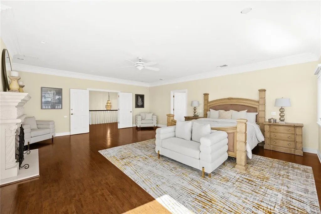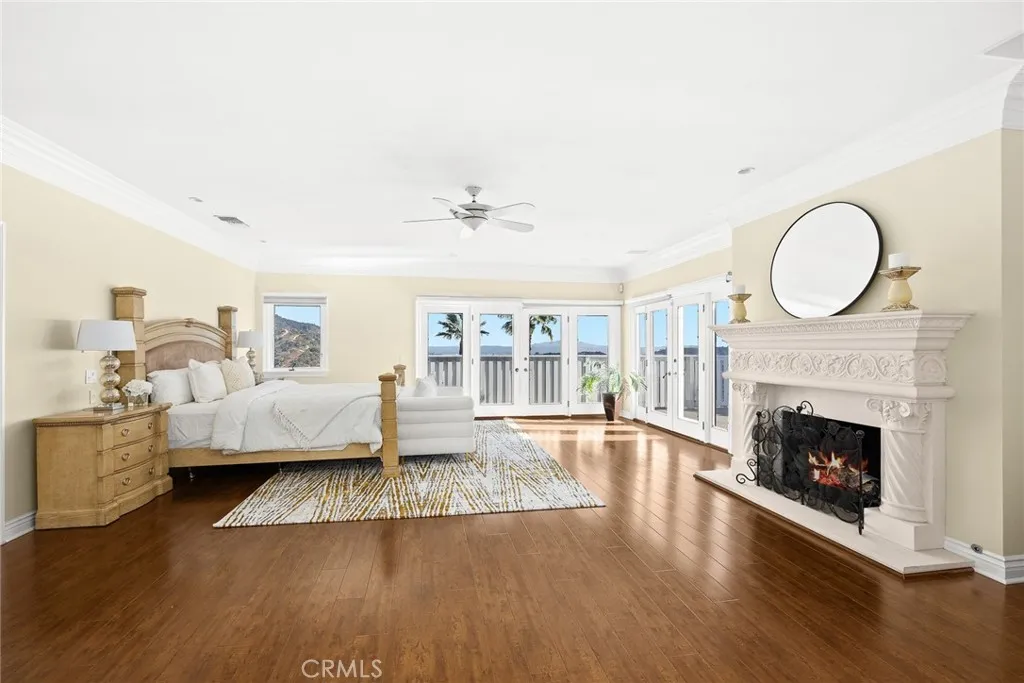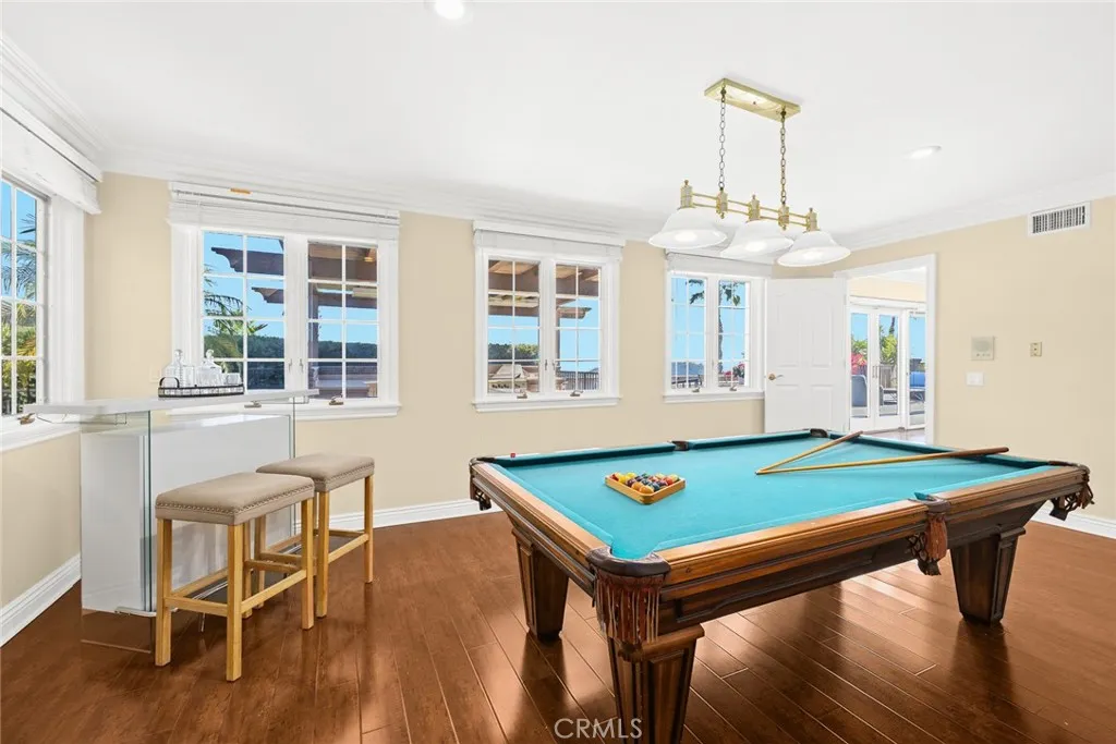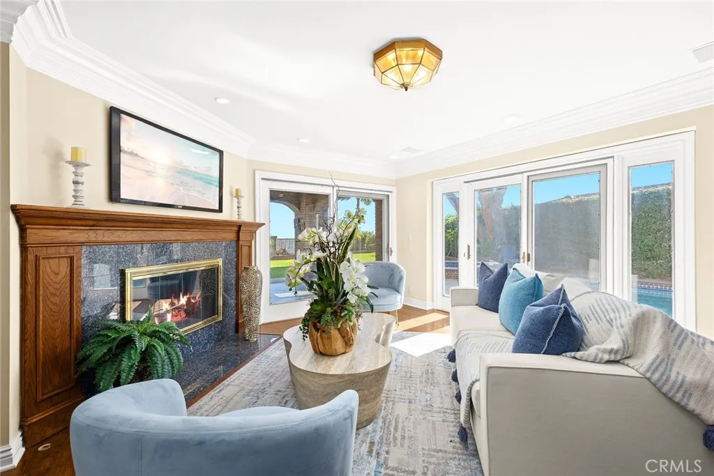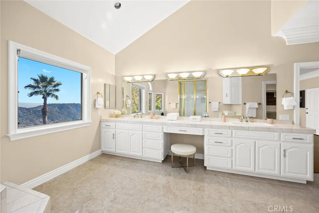 This spectacular view home, nestled in Arcadia's highly desirable Highland Oaks neighborhood, is part of the prestigious Arcadia School District and exemplifies Southern California living with expansive panoramic views of the gardens, mountains and city lights. Situated on a hilltop, this beautifully updated estate offers the perfect combination of serenity, breathtaking views and privacy. As you approach the home you're welcomed by a meticulously landscaped front yard and a paved circular driveway leading to an elegant entry. The artistry of marble inlay flooring graces the entry and living room, which seamlessly integrates indoor and outdoor spaces through walls of glass windows framing the stunning landscapes. The bright family room, with views of the pool and canyon, opens onto a large outdoor patio, perfect for entertaining. Anchored by two gas fireplaces, one in the living room and another in the family room, this home exudes warmth and comfort. The formal dining room and breakfast room, both featuring walls of glass, continue showcasing gorgeous scenic canyon views. Additional features include a large recreation room and beautiful wood floors throughout the living areas, enhancing the home's natural charm. Originally built in 1959 then rebuilt in 1991, this expansive 6,103 sq. ft. estate offers 8 bedrooms, 7.5 bathrooms, with 5 en-suite bedrooms upstairs and 1 en-suite downstairs. The primary suite elevates luxury with a fireplace, direct access to a sun-deck patio, two large walk-in closets, and a spa-like bathroom with a soaking tub offering incredible canyon views