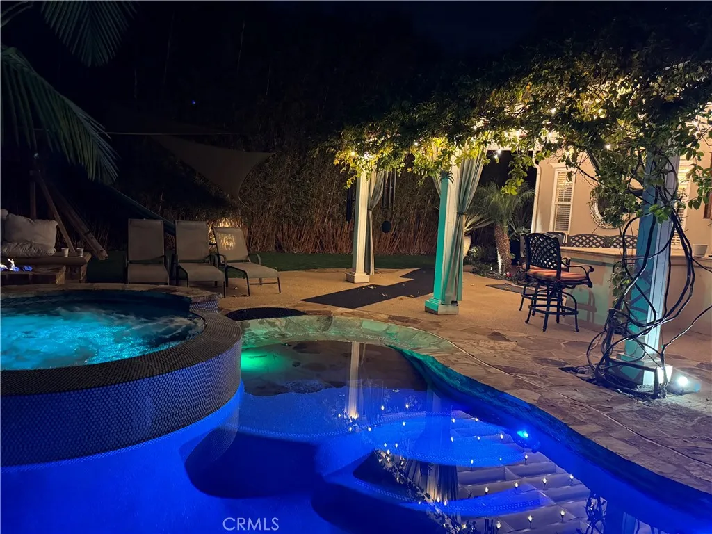 Just off the luscious Mesa Verde golf course is the Cornerstone private gated community featuring a play scape and open guest parking. The home is the largest lot in the community and is the only home with a heated private pool and Jacuzzi. It's a corner lot nestled in the back of the community and shares the drive up with four other homes. The drive up leads to an attached two car garage with extended storage space and above head racks. The house is 4 bedroom 3 full bathrooms. Recent remodel included an electrical panel upgrade and is equipped with USB-C outlets throughout, complete Kitchen remodel great for hosting. The farm doors take you out back to your own private oasis with an outdoor kitchen, TV for entertainment, a large gathering gas fire pit and a private play scape. Fruit trees, herb garden and beautiful, thick bamboo enhance the privacy and tropical aesthetic. Costa Mesa is close to world class beach city, known for the Orange County fairgrounds, South Coast Plaza, Vanguard University, Hoag Hospital and Orange Coast College.