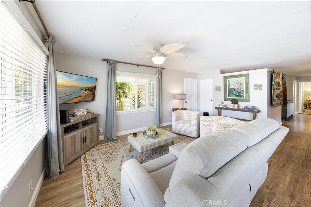 Spacious 2BR/2BA + office/3rd BR in desirable 55+ community near downtown San Juan Capistrano & Doheny Beach. Remodeled master & guest baths, updated kitchen w/new cabinets, counters, backsplash, and extended breakfast bar. New laminate wood flooring, ceiling fans, and screened front porch w/caf lighting. Private backyard oasis with orange & lemon trees, roses, plumeria, bird of paradise, perennials, succulents, water fountain, and gate to scenic San Juan Hills & community amenities. New 30-yr roof, 2025 HVAC, newer water heater, electric panel, energy-efficient windows, smart thermostat. Seasonal trolley stop at community entrance to SJC, Dana Point, & Laguna Beach. Pet-friendly park w/clubhouse, pool, jacuzzi, putting green & more!