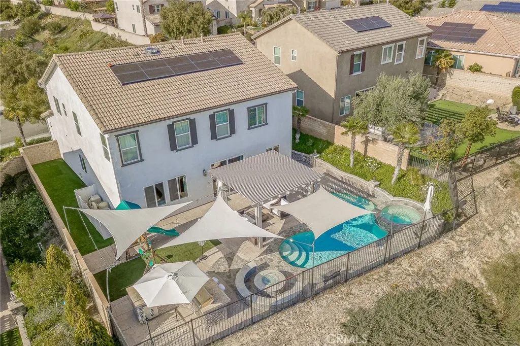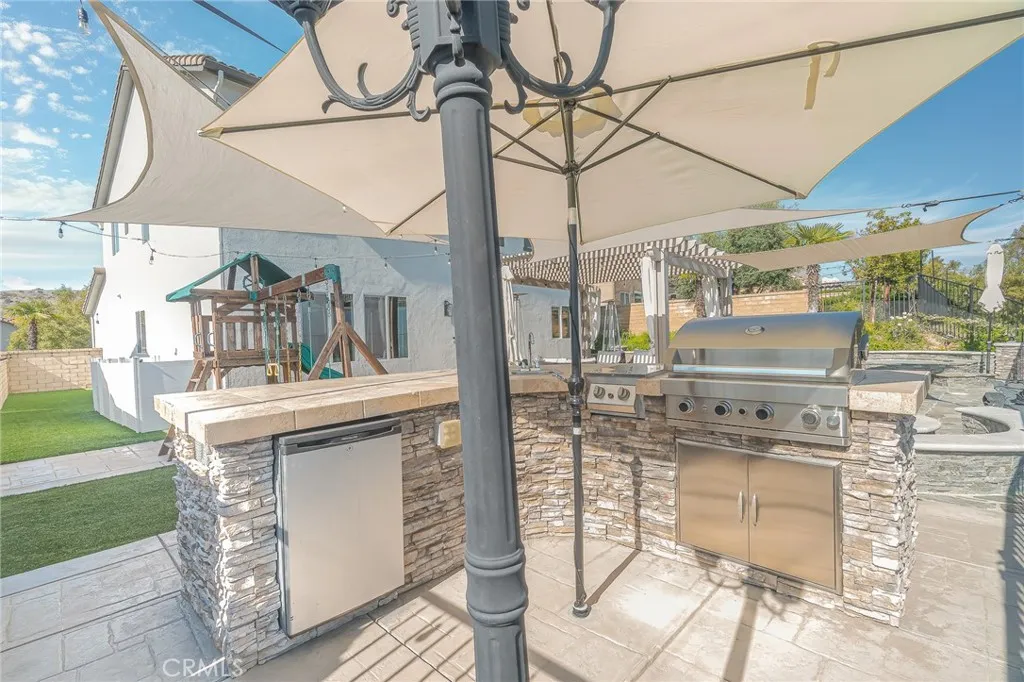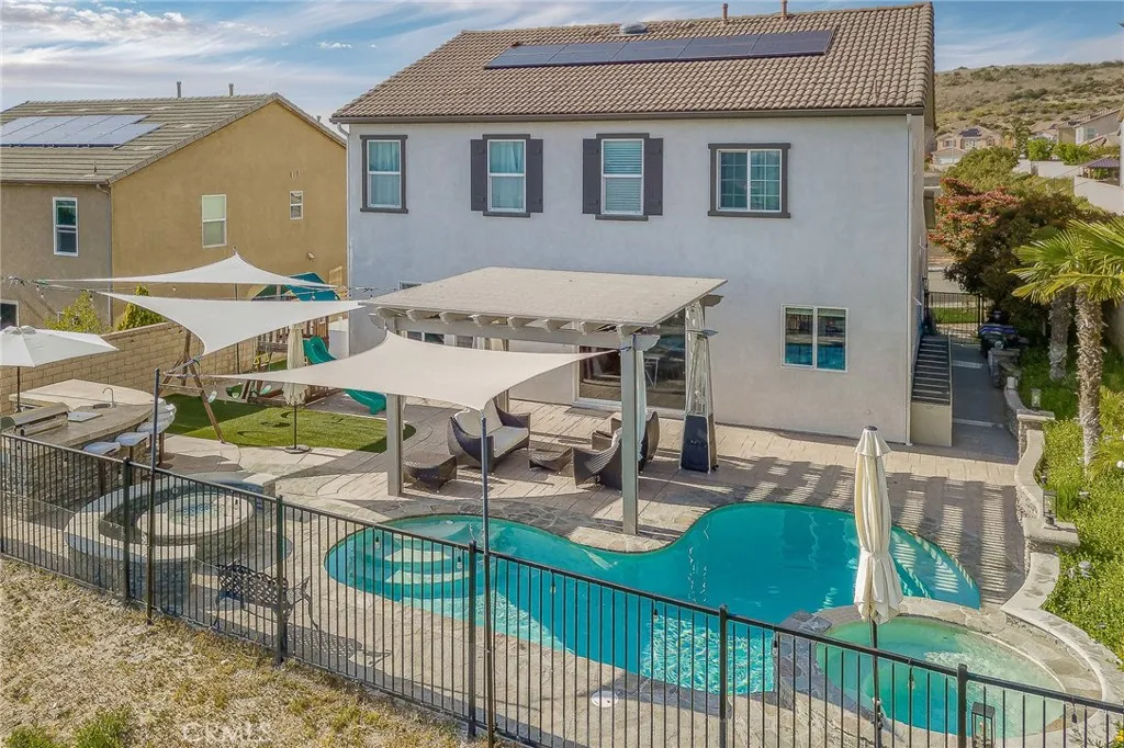 Welcome to 20256 Dorothy Street, a resort-style view home in the heart of Saugus, Santa Clarita. This former model residence has been meticulously upgraded and thoughtfully designed to deliver modern comfort, timeless style, and ultimate functionality. Every corner reflects true pride of ownership, offering a lifestyle that feels like a year-round vacation. Step inside and youll be greeted by an open-concept layout flooded with natural light. Expansive windows draw your eyes to the backyard paradise, where a custom pool and spa create the centerpiece of an entertainers dream. Cascading waterfalls, color-changing lights, and smartphone-integrated controls bring luxury resort living right to your own home. Multiple seating areas, a fire pit, and an outdoor kitchen with built-in BBQ, sink, and refrigerator make entertaining effortless. The side yard provides versatility, with space for a dog run or play area, and currently includes a removable playground. From this private perch, youll even enjoy breathtaking fireworks and sweeping valley views. Inside, the first floor features a desirable guest suite with walk-in closet and full bathroom, perfect for extended stays or multi-generational living. The chefs kitchen offers granite counters, stainless steel appliances, double ovens, a large island, and abundant cabinetry, plus a walk-in pantry for storage. The dining and living spaces connect seamlessly for gatherings, while the oversized laundry room and partially converted garagecurrently a bonus music studio or home officeadd flexibility to the floor plan. Upstairs, the primary