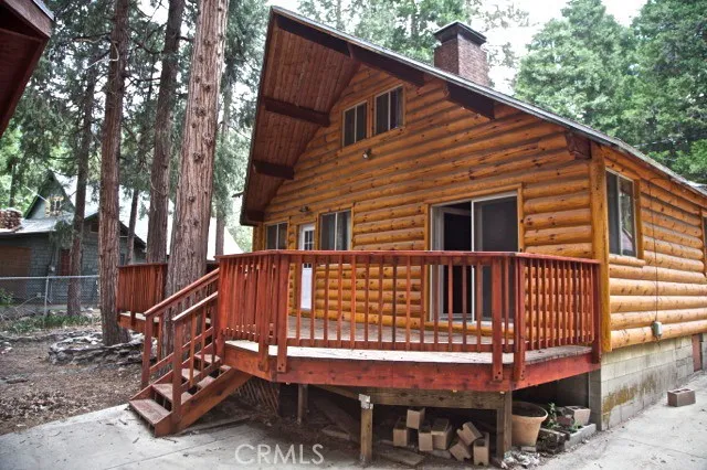 CHARMING MOUNTAIN LOG-SIDED HOME IN FOREST FALLS This beautifully crafted half-log sided home blends rustic character with modern comfort. Featuring 2 bedrooms plus a versatile den/office (or optional 3rd bedroom) and 2 full bathrooms, including an upstairs bath recently remodeled with custom natural stone and tile shower. The dramatic vaulted great room showcases exposed beams, warm knotty pine walls, a double-sided fireplace with airtight woodstove insert, and expansive windows that fill the space with natural light. A main floor master suite offers convenient outdoor access, while the large rear deck is perfect for entertaining or relaxing among the trees. Outside, youll find a fully fenced yard, detached 2-car garage with bonus work area, paved driveway, and one of the best-producing apple trees in Forest Falls. A true mountain retreat ready to enjoy year-round!