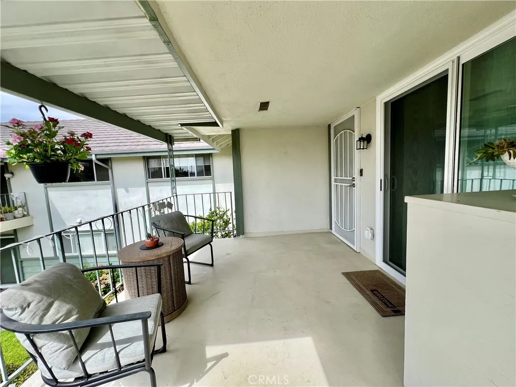Experience resort-style living in this spacious second-floor condo located in the highly desirable 55+ New Horizons community. This large 2-bedroom floor plan offers comfort and convenience with surrounding lush landscaping. The bright, expansive living room features a cozy fireplace and opens onto a massive balcony overlooking a beautiful green walkway, where you can enjoy refreshing breezes and tranquil views. This unit uniquely comes with two spacious garages right outside the residencea rare find in the community. The large master bedroom has its own balcony includes two generous closets and bathroom with granite-topped vanities. A beautiful front patio offers additional outdoor space perfect for relaxing and entertaining guests. Laundry hookups are ready for you. Residents enjoy a wealth of amenities including a 9-hole golf, swimming pools, gym, tennis and pickleball courts, ping pong, ceramic and wood shops, plus a clubhouse with a library, kitchen, and meeting rooms. Combining spacious living and access to outstanding amenities, this condo delivers an exceptional lifestyle where every day feels like a getaway.