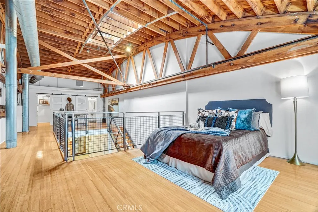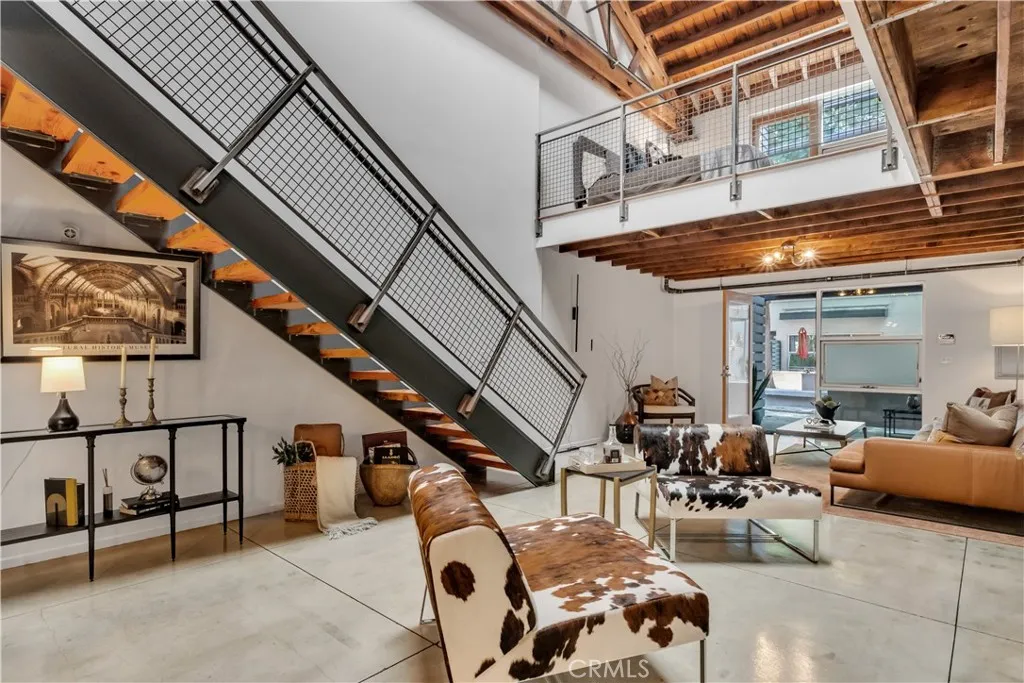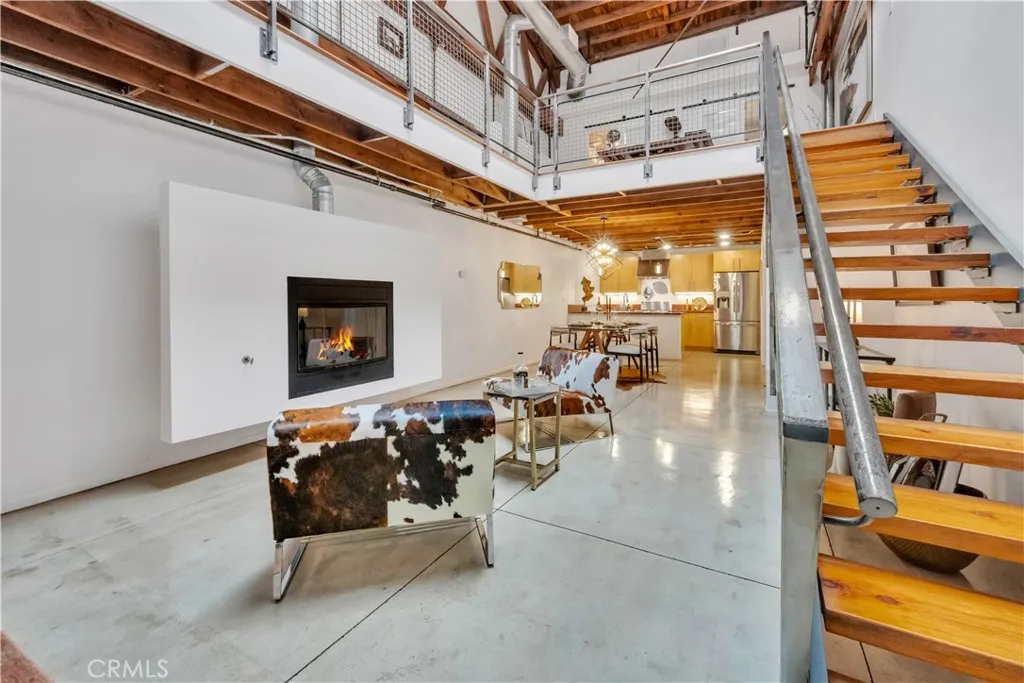 Architectural Loft Living in the Heart of Downtown Long Beach. Welcome to Courtyard Lofts, an award-winning development designed by renowned local architecture firm Studio One Eleven. This boutique community features 16 industrial-style lofts thoughtfully arranged around a tranquil, landscaped courtyard. Recognized with the prestigious 2009 AIA (American Institute of Architects) Housing Award, Courtyard Lofts sets the standard for innovative urban design.Rarely available, this striking two-level residence embodies architectural distinction. Soaring nearly 25-foot open-beam truss ceilings, oversized skylights, and gallery-like proportions fill the space with natural light and dramatic volume. Two private, tree-shaded patios expand the living experience outdoors, while a sleek catwalk and floating fireplace serve as sculptural centerpieces.The open-concept main level seamlessly connects the living, dining, and chefs kitchen, which is outfitted with premium finishes and fixtures. The well-designed floor plan includes two bathrooms, a generous walk-in closet, and abundant storage throughoutincluding a spacious two-car garage with additional storage capacity. Upstairs, the airy lofted bedroom suite opens to a private balcony with viewsperfect for a peaceful morning or evening retreat. Additional features include polished concrete floors, an in-unit washer and dryer, and central HVAC. Located just steps from Historic Pine Avenue, The Promenade, Shoreline Village, and the beach, this exceptional home offers the very best of sophisticated urban living, wrapped in architectural pedi