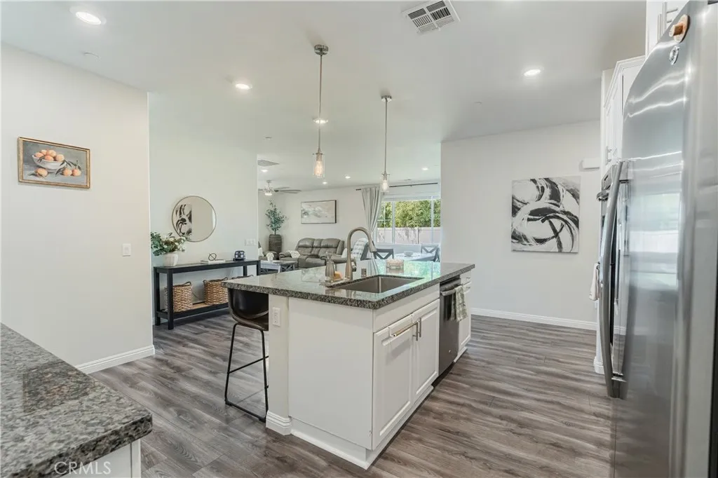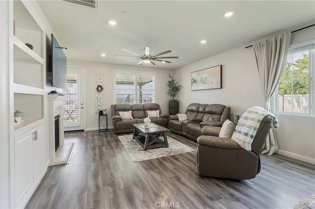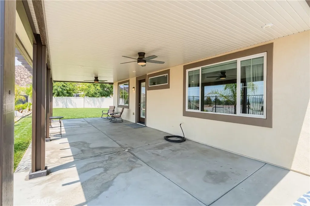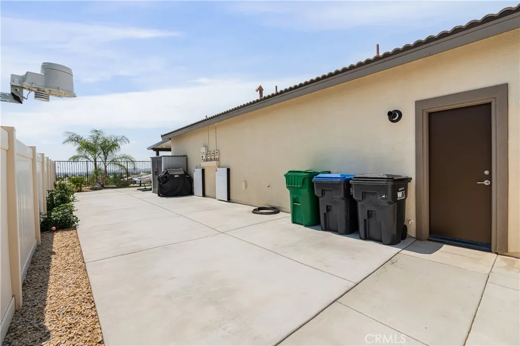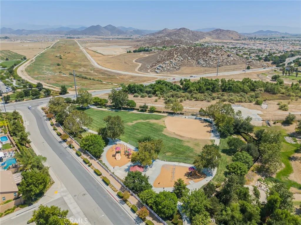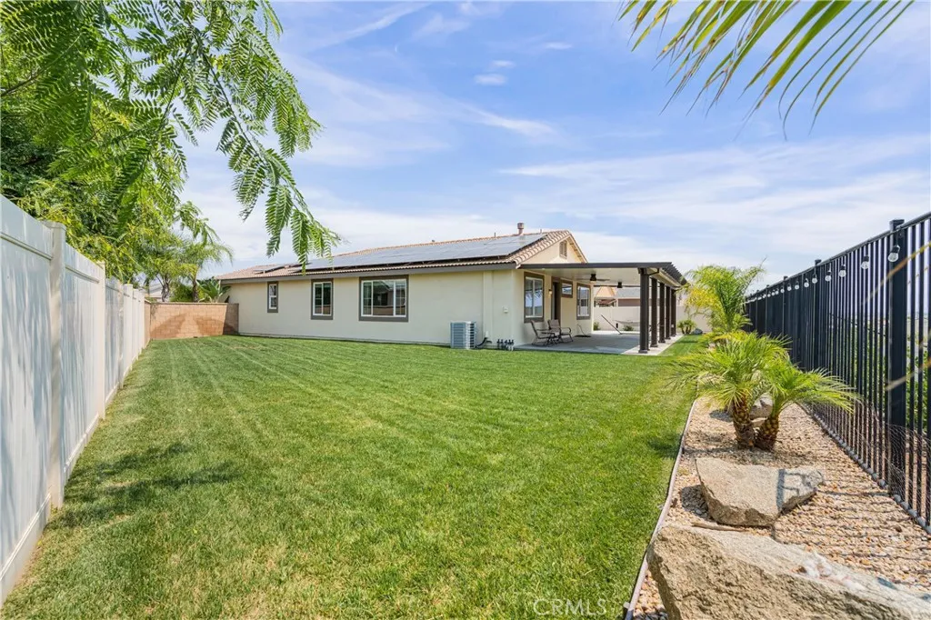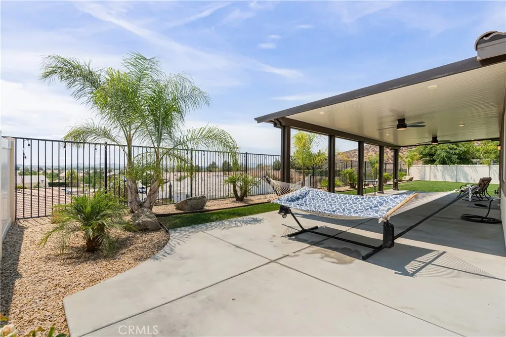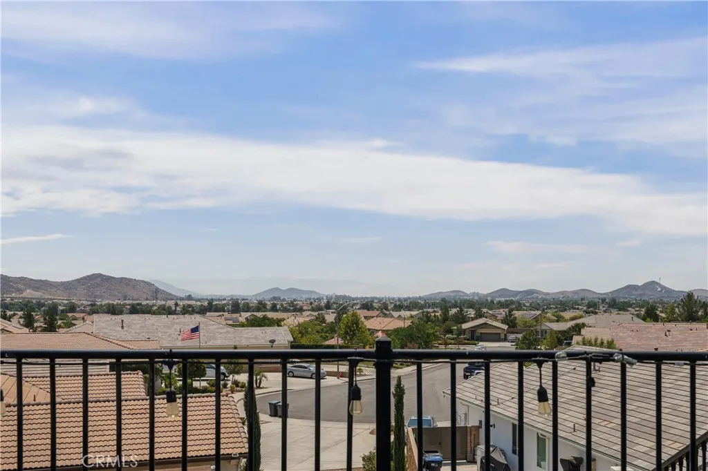 Welcome to this one-of-a-kind single story home at the end of a cul de sac with amazing views and RV parking!! Beautifully upgraded 3-bed, 2-bath Menifee hilltop home where the views are just as impressive as the upgrades. From sunrise to sunset and even under the stars you'll enjoy the spectacular panoramic scenery this lovely home has to offer. Come 4th of July, you'll even have front row seats to the firework show without ever needing to leave. The moment you step inside, youll find high-end laminate flooring throughout the home, complemented by upgraded baseboards for a modern, polished look. The interior has been refreshed from floor to ceiling, and the exterior has been freshly painted, giving the whole home a bright, welcoming feel. The living room features custom shelving, plantation shutters and a gorgeous stone fireplace, adding both style and elegance. Outside, the concrete driveway has been extended to include RV parking and the backyard has been completely renovated with lush grass and a full irrigation system. The spacious patio cover features two ceiling fans with lights, six additional built-in lights, and convenient outlets on both sides, making it a perfect space for entertaining or relaxing. This home is equipped with 28 solar panels and two Tesla backup batteries for all your energy needs, plus a Tesla charger already installed in the garage for your convenience. The garage also features an epoxy floor finish and extra acks overhead for all of your storage needs. This home is a rare gem in the heart of Menifee that is close to shopping, schools, golf cou