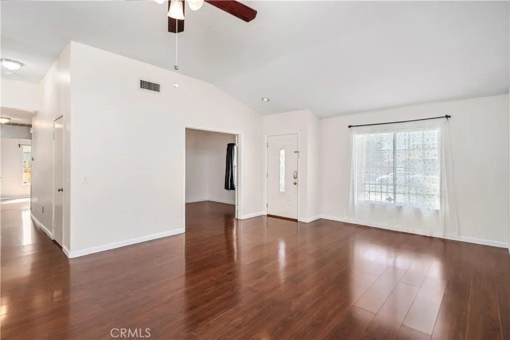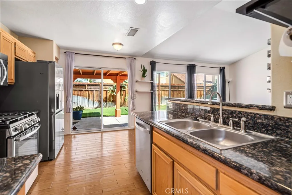 Don't wait! This beautifully upgraded single-story home is move-in ready and available for a quick closeyou could be celebrating the holidays in your new home! This 4-bedroom, 2-bathroom home offers over 1,600 sq. ft. of bright, open living space with high ceilings, laminate wood floors, and modern finishes throughout. The open-concept kitchen shines with granite countertops, stainless steel appliances, and ample storage, flowing seamlessly into both the formal living room and cozy family room with a fireplaceperfect for entertaining or relaxing nights in. The spacious primary suite offers a peaceful retreat with a walk-in closet, dual sinks, and updated en suite bathroom. All appliances are included, and you'll love the indoor laundry room, upgraded bathrooms, and energy-efficient solar system. Step outside to a private backyard oasis with lush planter beds, mature landscaping, a covered patio, and paved side yardperfect for outdoor dining or play. The attached 2-car garage and upgraded fencing complete the picture.