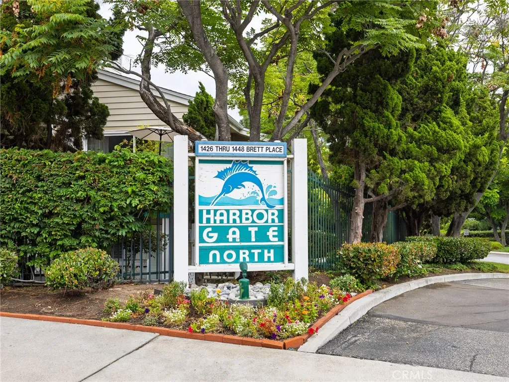 Welcome to this cheery, move in ready, UPPER 1 bedroom/1 bath unit in HARBOR GATE NORTH. This GATED COMMUNITY has beautifully maintained mature landscaping, water feature, and an inviting pool and spa. Wood flooring, a VAULTED CEILING and cozy FIREPLACE highlight the living room, which opens to a private balcony. The kitchen has new QUARTZ COUNTERS, stainless steel dishwasher, sink, refrigerator, stove and microwave. There are in-unit washer and dryer hook-ups, with washer and dryer included! The unit enjoys central AIR CONDITIONING and a spacious walk-in closet in the bedroom. There is a detached TANDEM GARAGE. The unit is conveniently located near Gate #2, which provides easy access for your guests. Conveniently located near shopping, dining and movies.