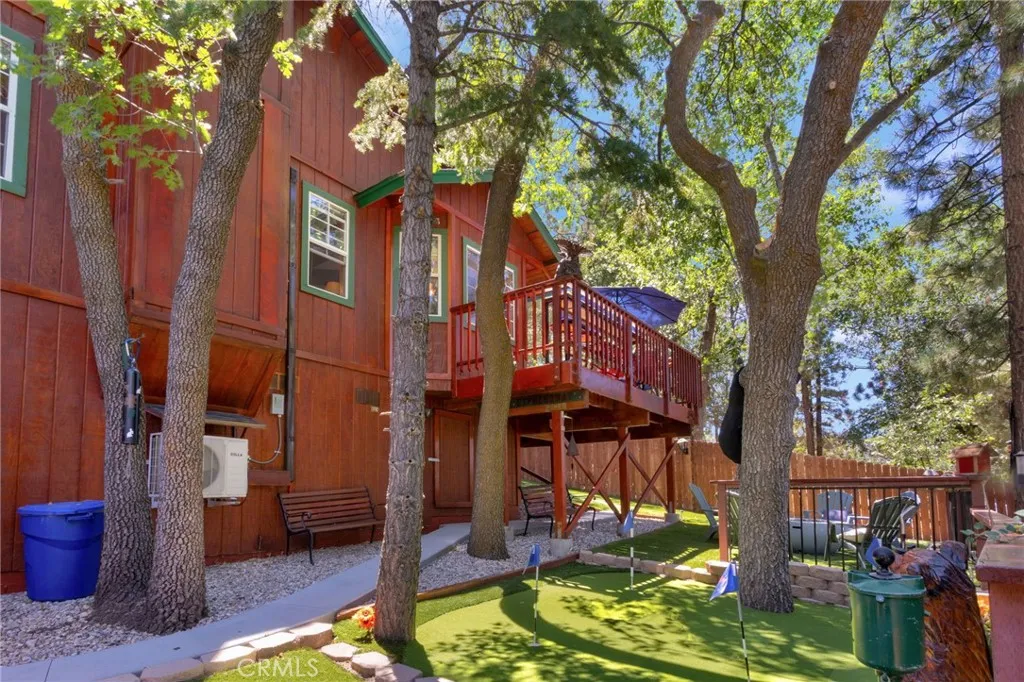 Beautifully Upgraded Moonridge Retreat! Set on a private, well treed lot with lake and mountain views, this meticulously maintained property blends relaxation and style. The main home offers a convenient ranch style layout with wood lined vaulted ceilings in the main room, 2 bedrooms and 2 baths, including a spacious master suite. Notable upgrades include new flooring throughout, mini splits for added comfort, an open remodeled kitchen that features granite countertops, freshly painted cabinets and stainless steel appliances. Bathrooms are beautifully updated with marble counters and modernized vanities. A rare find, the newly added detached guest suite adds a third bedroom, third bath, and 480 sq ft of additional living space, along with an oversized garage below that includes an EV charger. Outdoors, enjoy extensive landscaping, a putting green, and multiple decks for entertaining or relaxing. Also includes an oversized shed with ample room for storage. Don't miss this one...pride of ownership is evident in every detail!