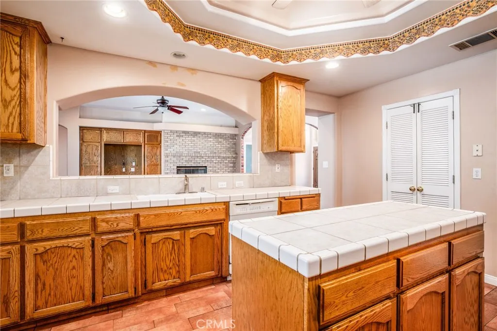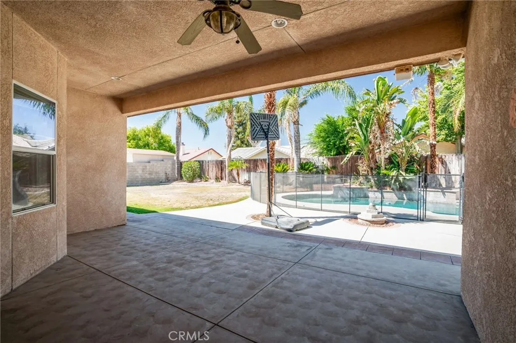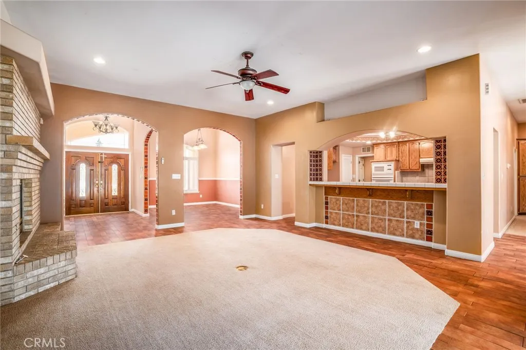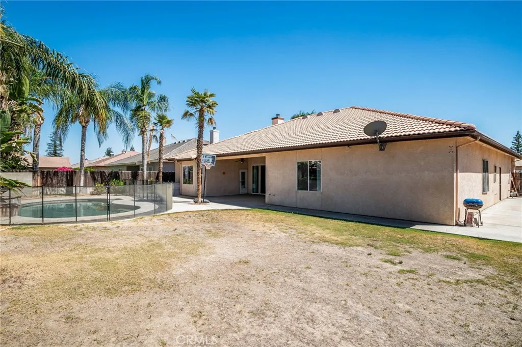 This expansive and beautiful single-story home offers over 2,758 sq. ft. of living space, and a big size lot of 10,890 sq ,ft. featuring 4 bedrooms, 3 bathrooms, and a bright open layout perfect for both everyday living and entertaining. Inside, youll find vaulted ceilings, arched passageways, a welcoming brick fireplace, and a spacious family room with custom built-ins. The kitchen is designed with functionality in mindfeaturing tile countertops, a center island, and abundant cabinet spacewhile overlooking the main living areas for seamless interaction. The primary suite offers a peaceful retreat with a large sitting area, oversized walk-in closet, and a spa-inspired ensuite bathroom with dual vanities, soaking tub, and separate shower. Secondary bedrooms are generously sized with plenty of natural light. Step outside to your private backyard oasiscomplete with a sparkling pool, tropical landscaping, and ample patio space ideal for gatherings. With a charming front elevation, established palm trees, and a spacious driveway leading to a two-car garage, this property combines curb appeal with practicality. A true entertainers delight and a perfect place to call home. Your DREAM HOME IS HERE !