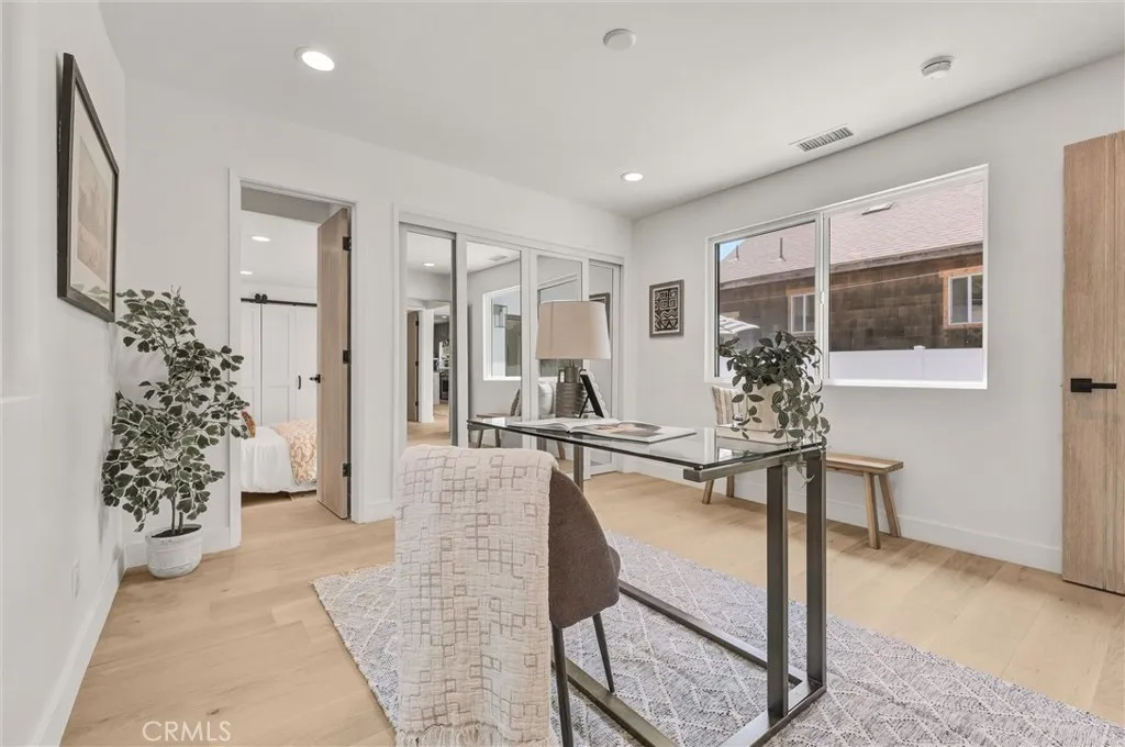 Located in the highly sought-after Madison Heights neighborhood, this beautifully remodeled 1,431 sq. ft. home offers an open floor plan that blends sophisticated elegance with modern convenience. With meticulous attention to detail, the residence features 3 cozy bedrooms and 3 bathrooms, each showcasing contemporary finishes. Upon entering, youre welcomed by a spacious living room that flows effortlessly into the mid-century-inspired kitchen, which features with two-toned cabinetry, a large central island, and sleek quartz countertops. The open-concept design extends into the living and dining areas, providing a seamless space ideal for both entertaining and daily living. This home offers exceptional versatility with two master suites, while the third bedroom offers the potential to serve as a home office. Throughout the home, stunning engineered wood floors add sophistication and warmth to every room. Step outside into the backyard, where you'll find ample space for outdoor activities and an convenient side entrance to one of the ensuite. The detached 2-car garage with a bonus storage room in the back further enhances this home's functionality. Centrally located just minutes from top restaurants, theaters, parks, and entertainment options, this home is in close proximity to renowned schools including Caltech, Polytechnic School, Westridge School, Sequoyah School, and more. Dont miss the opportunity to own this exquisite home in one of Pasadenas most desirable neighborhoods.