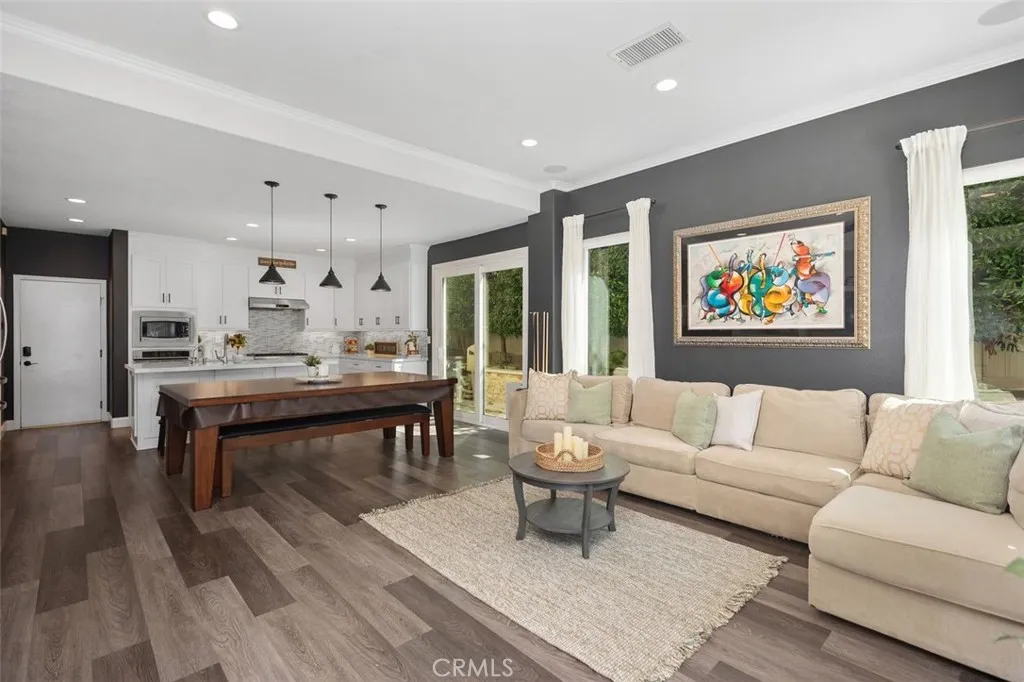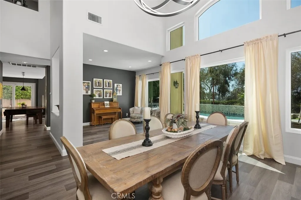 Beautiful Las Flores Home with Endless Upgrades, an Entertainer's Backyard and Amazing Sunset Views! This 5 bedroom and 3 bathroom home with a 3-car garage and a resort-style pool/spa boasts cathedral ceilings, wood laminate flooring, owned and paid solar, house fan, Anlin windows, electric blinds, remodeled kitchen, ceiling fans, recessed lighting, tankless water heater, water softener/carbon filter, repiped and more! The remodeled kitchen opens to the family room and includes a large island, stainless steel appliances, stone countertops, wood cabinets, water filter with reverse osmosis and plenty of storage. The family room includes a cozy fireplace, beautiful built-ins and opens to the huge backyard. The living room and dining room are very spacious with cathedral ceilings, custom chandelier and many windows for natural light. The downstairs bedroom is currently being used as an office with amazing wood cabinet built-ins. The beautiful staircase with wood railings leads you up to the secondary bedrooms and primary bedroom. The primary bedroom is very spacious with double doors, tall ceilings, large closets and a primary bathroom with dual sinks, large bathtub and walk-in shower. The 3-car garage includes epoxy flooring, two paid Telsa batteries, two 220 volt high efficiency EV chargers and air conditioning perfect for a gym. The entertainer's backyard is a dream with a granite BBQ island with seating, recently remodeled resort-style pool and spa with added additional lighting and a tanning shelf with in-pool umbrella, a relaxing fire pit with gas line, wired and installe