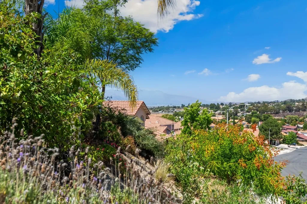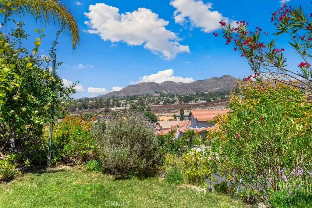Charming Hilltop Home with Lake & Mountain Views in Wildomar. Located on a cul-de-sac, this property offers views of Lake Elsinore, surrounding mountains, and stunning sunsets all enjoyed from your very own private balcony off the primary suite. Step inside to vaulted ceilings and an airy floor plan featuring a formal living room, formal dining room and great room with a cozy fireplace. The kitchen is a chefs dream, boasting granite countertops, stainless steel appliances, and a window view that looks out over the backyard. Upstairs, the expansive primary suite offers a serene retreat with panoramic views off of the balcony. The en-suite bathroom includes a soaking tub, walk in shower and counters with granite finishes. All bedrooms and the great room include ceiling fans for added comfort. Enjoy indoor-outdoor living with a fully landscaped .18-acre lot featuring fruit trees, grapevines from Budapest, and a private backyard oasis complete with a covered patio perfect for entertaining or relaxing in peace. Additional highlights include remodeled bathrooms, a 3-car garage, and close proximity to schools, shopping, and easy freeway access. Dont miss the opportunity to own this exceptional view home in a great location!