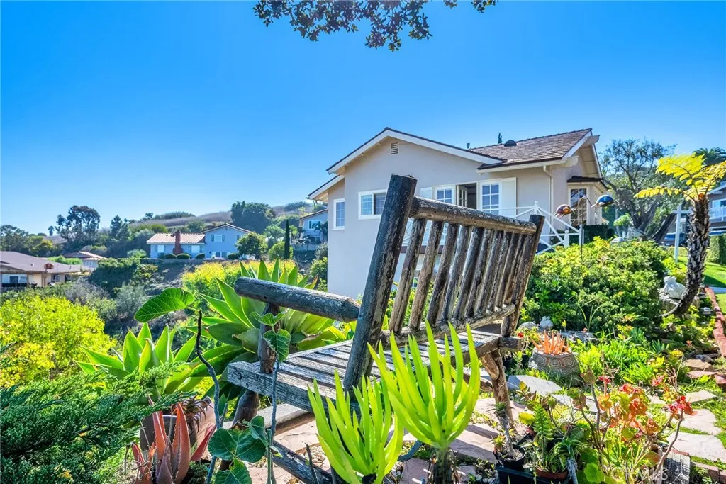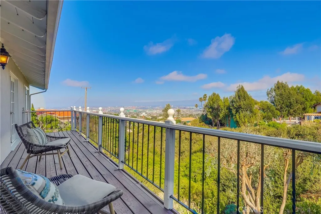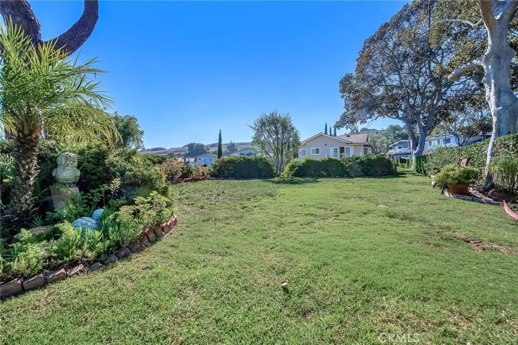 Experience breathtaking harbor and ocean views from nearly every room of this beautifully remodeled home, nestled at the southernmost point of LA County on the Palos Verdes Peninsula. Tucked away at the end of a quiet canyon, this property offers easy freeway access and is conveniently located just 25-30 minutes from both Long Beach and Los Angeles Airports. The home is thoughtfully designed with high-quality finishes, including numerous French doors that maximize the stunning views, elegant crown moldings, distressed hardwood floors, and plush carpeting in the bedrooms. The grand marble-inlaid entry leads seamlessly into the formal living room, dining room, and family room, boasting open-beamed ceilings and a wet bar. The gourmet kitchen is both stylish and functional, featuring granite countertops, a large peninsula with bar seating, and a sun-drenched breakfast nook where you can enjoy views from every angle. A beautiful bleached pine frame surrounds the brick fireplace in the living room, adding warmth and charm. This home offers TWO primary suites, each with panoramic viewsone on each levelalong with two additional view bedrooms, with access to private deck overlooking the terraced canyon. All four bathrooms have been tastefully remodeled, showcasing granite and tumbled marble accents. The expansive 19,543 sq ft lot is a gardeners dream, with lush landscaping, an array of fruit trees, and vibrant vegetation. A spacious, flat grassy area off the kitchen and family room provides the perfect spot for family gatherings, all while soaking in the spectacular canyon, harbor,