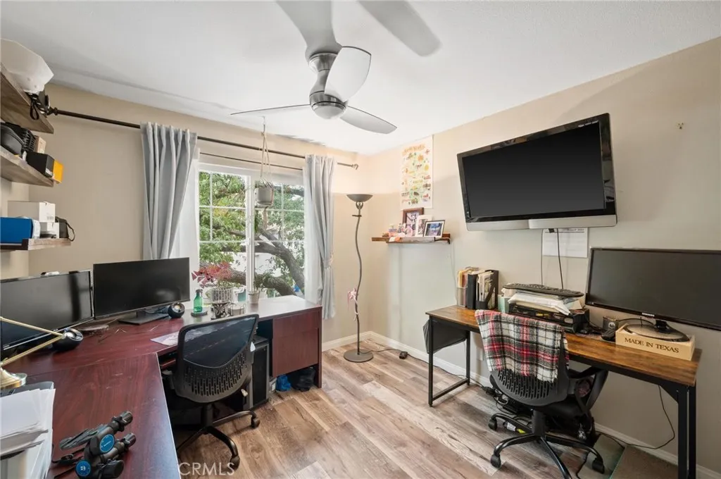 This spacious three-bedroom, two-bath condominium offers 1,180 square feet of comfortable living in a private and serene setting. As a desirable corner unit, it features vaulted ceilings that enhance the sense of space and natural light. The open floor plan provides a smooth flow between living areas, while the primary suite includes its own bathroom and generous closet space. Recent improvements include double-pane windows, an upgraded heater and A/C unit, water heater, newer bedroom flooring, ceiling fans, and a recently replaced roof, adding to both comfort and long-term value. A private detached tandem garage offers secure parking, additional storage, and a convenient side room for extra flexibility. The location provides both convenience and peace of mind, with quick access to the freeway for easy commuting while still enjoying the calm atmosphere of Westlake Village. Nearby amenities include Trader Joes, North Ranch Shopping Center, and The Lakes at Thousand Oaks, providing shopping, dining, and entertainment options just minutes away. With its quiet setting, vaulted ceilings, thoughtful upgrades, and spacious layout, this condominium is an excellent opportunity for those seeking comfort, privacy, and low-maintenance living.