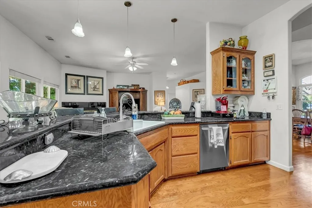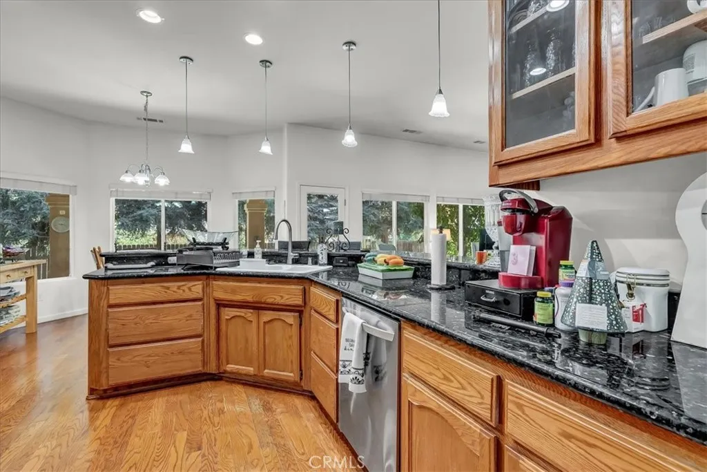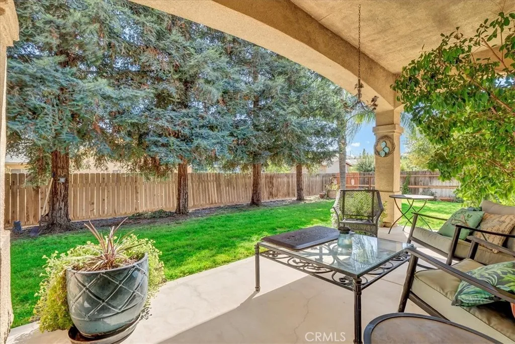 Welcome to Jasmine Ranch, a custom-home community where comfort meets elegance. Tucked at the end of a quiet cul-de-sac, this custom-built home offers 4 bedrooms, 2 bathrooms, and a spacious 3-car garage. From the moment you arrive, the lush landscaping and mature trees provide both privacy and a warm, inviting setting. Inside, youll find hardwood floors that flow seamlessly through the living spaces, paired with marble finishes in the bathrooms. The open-concept design includes a gourmet kitchen with granite countertops, ample cabinetry, and bar seating at the island - perfect for casual meals or entertaining. The primary suite is a true retreat with outdoor access, dual vanities, a walk-in shower, and a soaking tub. Outdoors, the covered patio creates the ideal space to relax or gather with family and friends. Surrounded by mature trees and manicured landscaping, the backyard offers peace and seclusion. With rolling hills and scenic farmland just beyond the community, Jasmine Ranch blends the serenity of country living with the convenience of being only minutes from town.