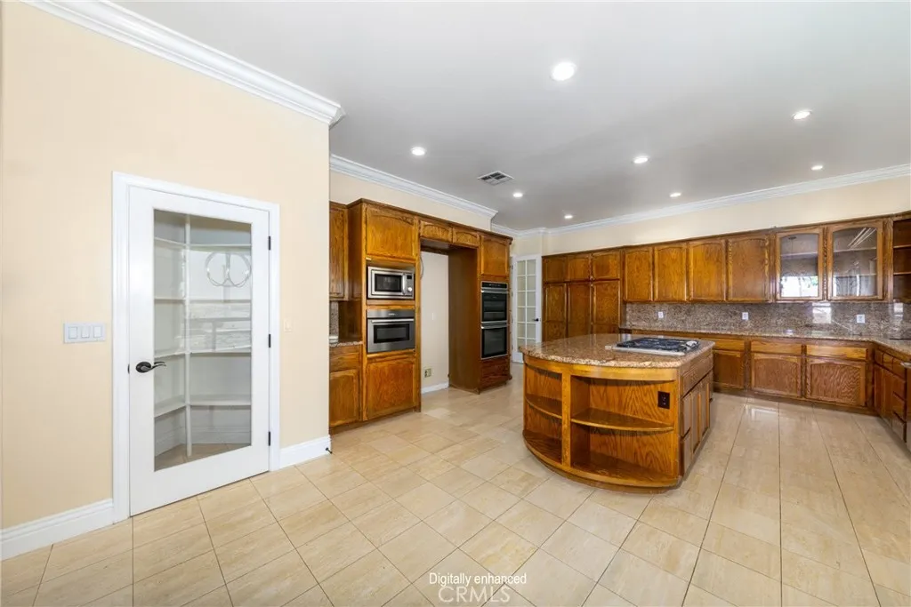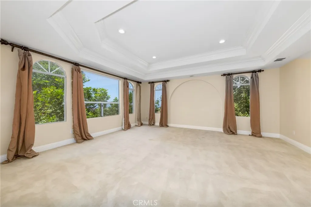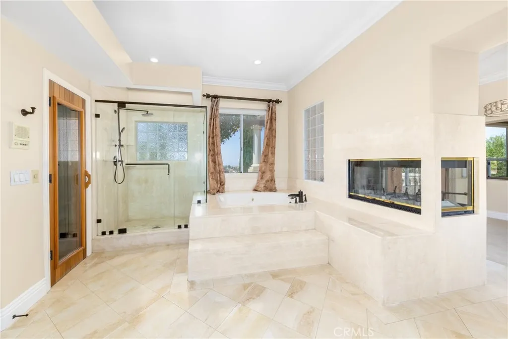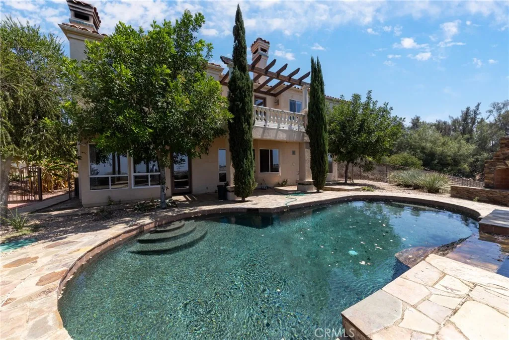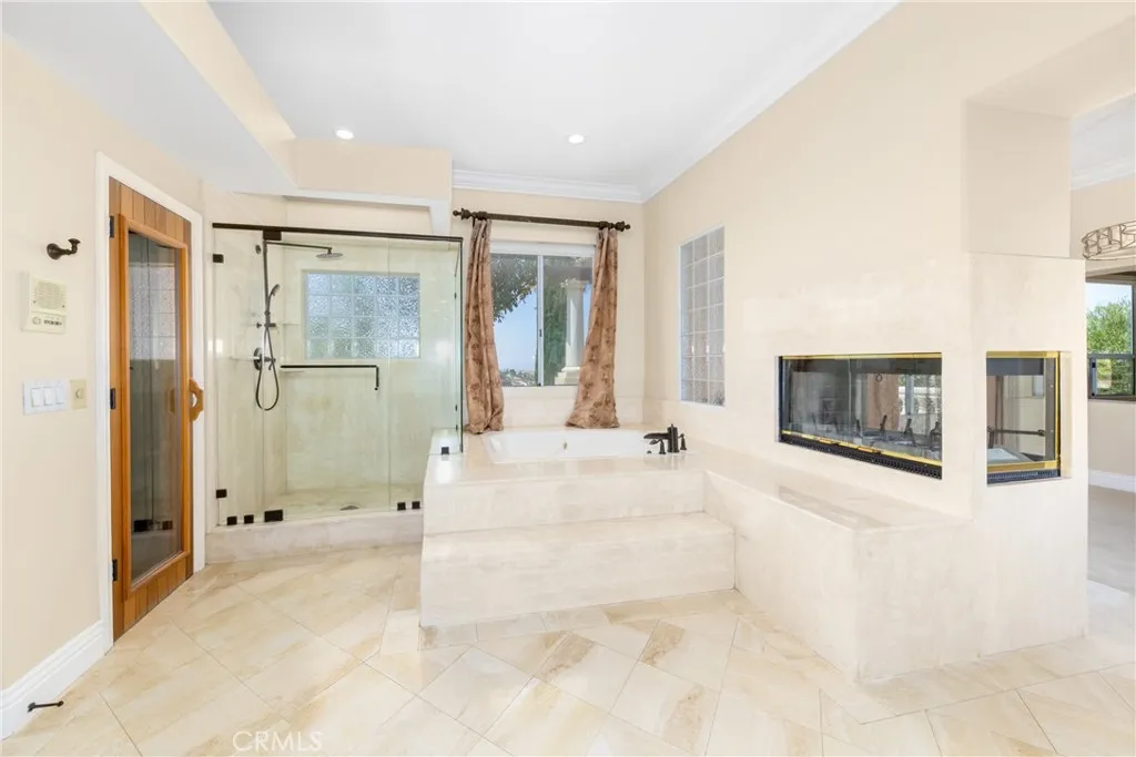 Welcome to the luxury Hillcreast Estates community! This is a beautiful, Meditterranean architutual design with 4 bedroom and 51/2 bathrooms. Entryway is tile flooring with spiral staircase to second level. Main level floor features one bedroom and 1 and 1/2 baths, formal living room with fireplace. Formal dining room features a fireplace and wet bar. Large kitchen with double ovens, double microwaves, granite countertops that connect with the living room. Large windows overlook the swimming pool and hills. Upstairs features loft with a wet bar, large balcony and 2 bedrooms each with full baths. Master bedroom includes large open floor plan with fireplace, jaczzi tub, wet bar, double sinks, private sauna and large balcony. Long private driveway with electronic security gate and 3 car garage. The backyard features private swimming pool, jacuzzi, fireplace and barbecue island. This home also comes with security camera's both inside and out. Very private and quiet neighborhood that is close to shopping centers.