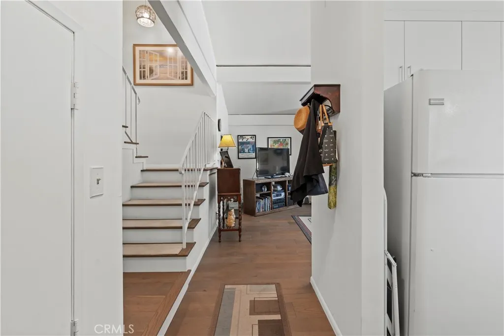 Light-filled mid-century post and beam artist's retreat nestled in the hills of the Santa Monica Mountains. Floor-to-ceiling windows and soaring open-beam architecture bring natural light and sweeping views of mature oaks into the main living space. Located south of Ventura Boulevard close to the Woodland Hills Country Club golf coursewith quick access to Woodland Hills shops and restaurants. Remodeled interior features engineered wood and ceramic flooring, classic fireplace, nestled book nook, and sliding glass door opening to deck. The thoughtfully designed kitchen offers quartz countertops, custom soft-close cabinetry, premium appliances, recessed lighting, and dimmable under-cabinet lightingcombining function and elegance. Two primary bedroom suites on upper level, each with beautifully remodeled bathrooms featuring Kohler fixtures, walk-in showers, and soft-close cabinet doors. Utilities have been upgraded, and home includes a large two-car garage, stylish security entry, and structural improvements such as shear walls and boltingproviding peace of mind in a timeless, private Woodland Hills setting.