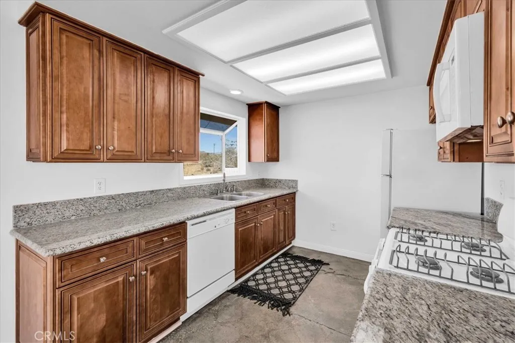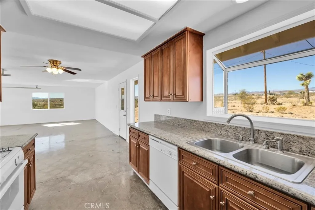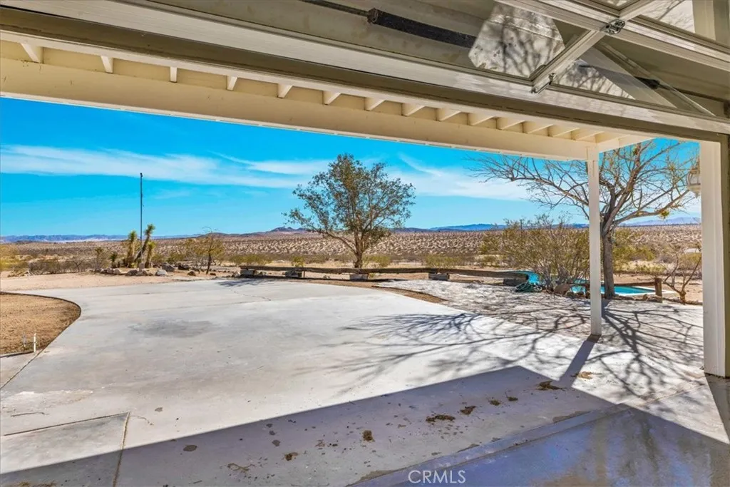 Come and make this charming Yucca Valley home with sweeping desert views your own. Perched on 2.02 acres of land, this delightful 3-bedroom, 2-bathroom home offers the perfect blend of seclusion and convenience. Built in 1985, this 988-square-foot property boasts an open-concept design, creating a bright and airy living space ideal for both relaxation and entertaining. Enjoy stunning, sweeping desert views right from your own yard while lounging by the sparkling inground pool. The property is fully fenced, providing privacy and a peaceful oasis. With desert landscaping, the home harmonizes with the natural surroundings, giving you that quintessential desert retreat feel. Conveniently located near all the local amenities in Flamingo Heights, this home is the perfect getaway or forever home for those seeking a serene lifestyle with easy access to nearby attractions and conveniences. Recent updates include a new garage door, paint, flooring, and pool enhancing the curb appeal and functionality. Whether you're looking for a vacation home or a full-time residence, this property offers the ultimate desert living experience. Seclusion, comfort, and breathtaking views await you. Don't miss the opportunity to make this your own!